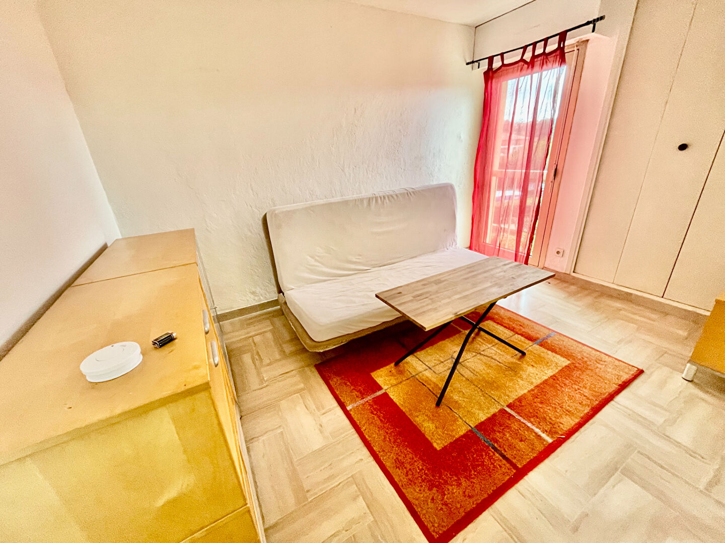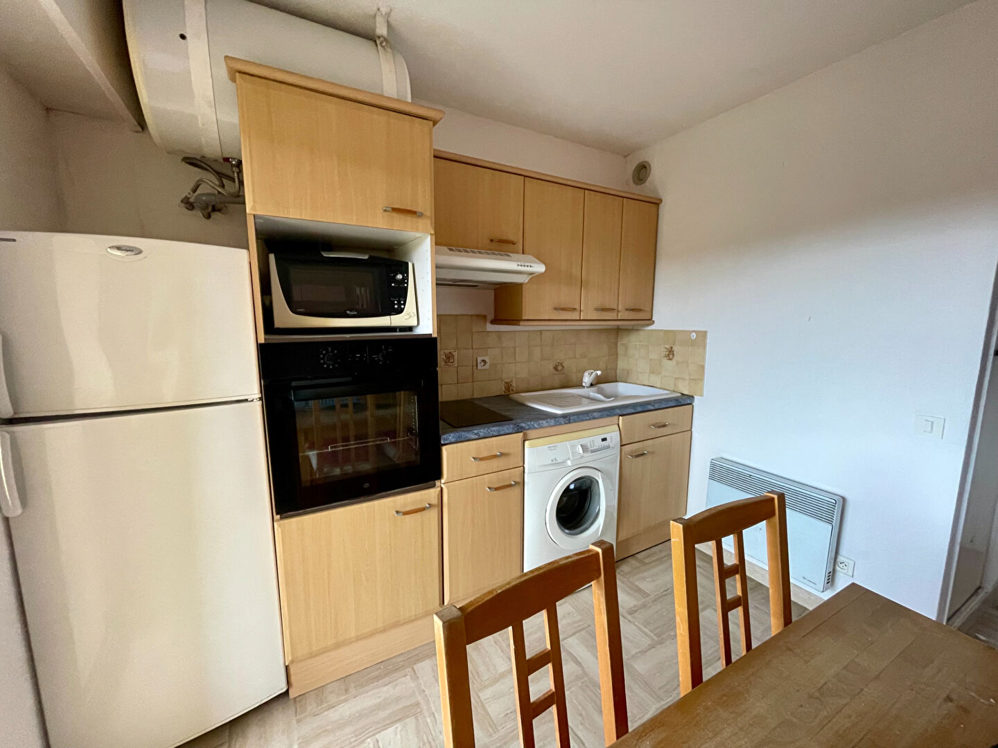 Séjour avec cuisine équipée donnant sur balcon , une salle d'eau avec water closet.