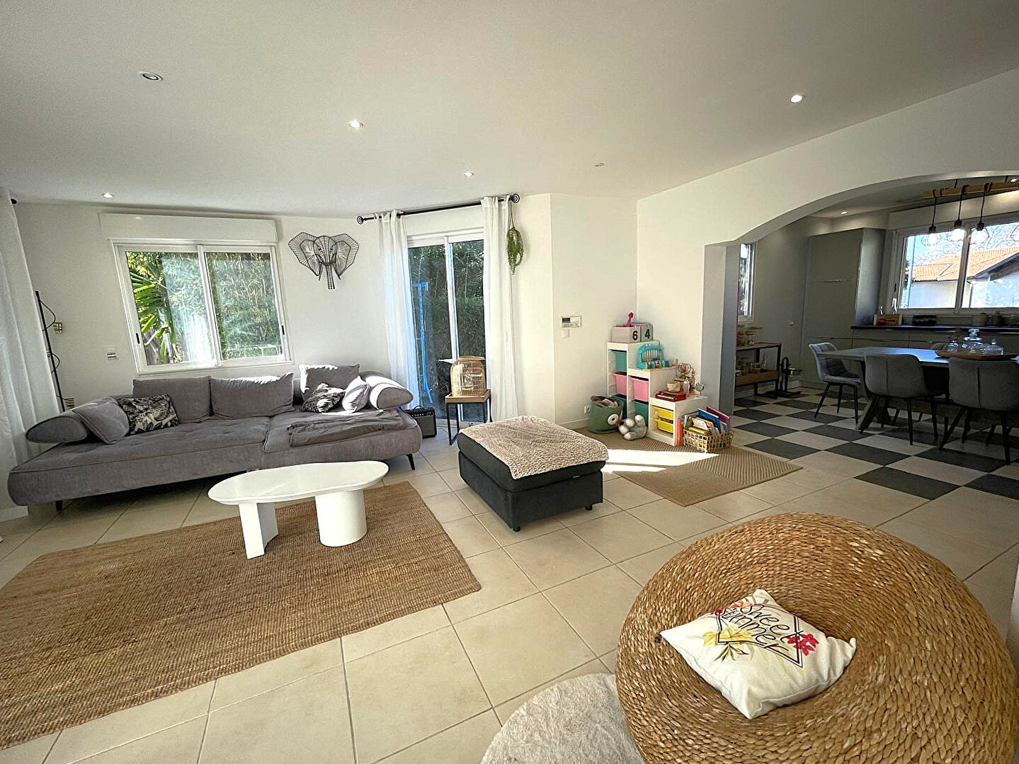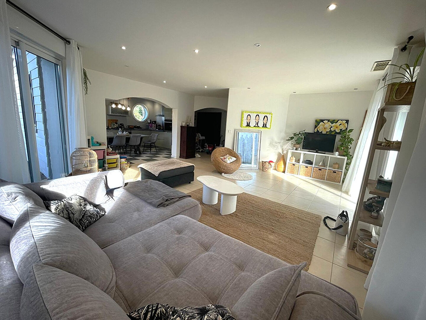 Dès l'entrée, vous serez séduits par une large entrée, un vaste séjour de plus de 50 m², agrémenté d'une cuisine ouverte entièrement équipée. La maison dispose de 3 grandes chambres spacieuses, d'une vaste salle de bains (baignoire + douche) et de 2 WC indépendants. Une buanderie pratique complète la partie habitable.