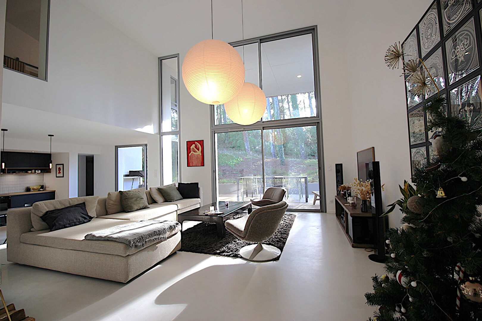 Découvrez cette somptueuse villa conçue par un architecte de renom des Landes. Nichée dans un écrin de verdure, cette maison moderne marie à la perfection lumière et espace grâce à de grandes baies vitrées et une hauteur sous plafond impressionnante.