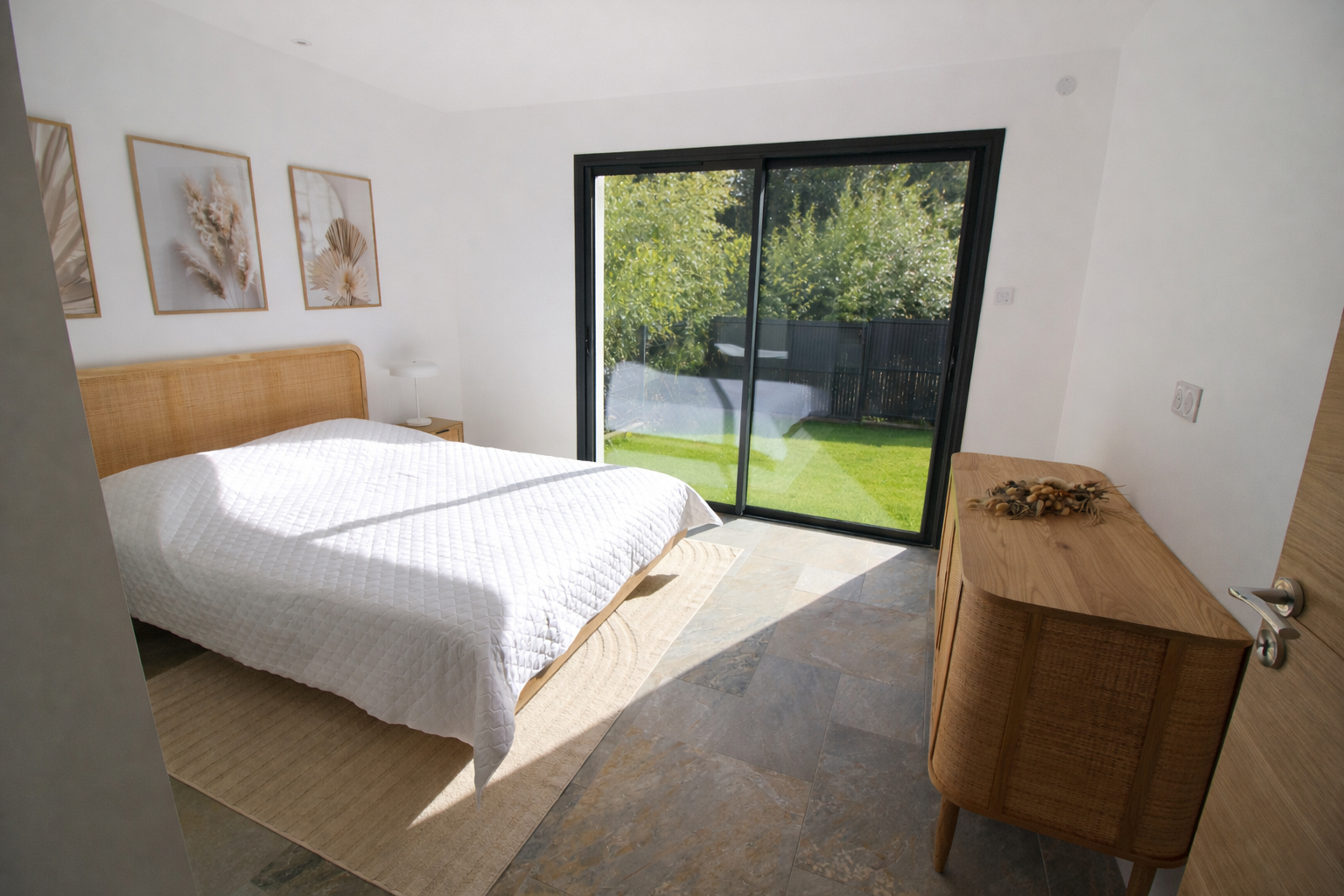 Le rez-de-chaussée accueille également une chambre, une salle d'eau, un WC indépendant ainsi qu'un bureau, parfait pour le télétravail ou une chambre d'appoint.