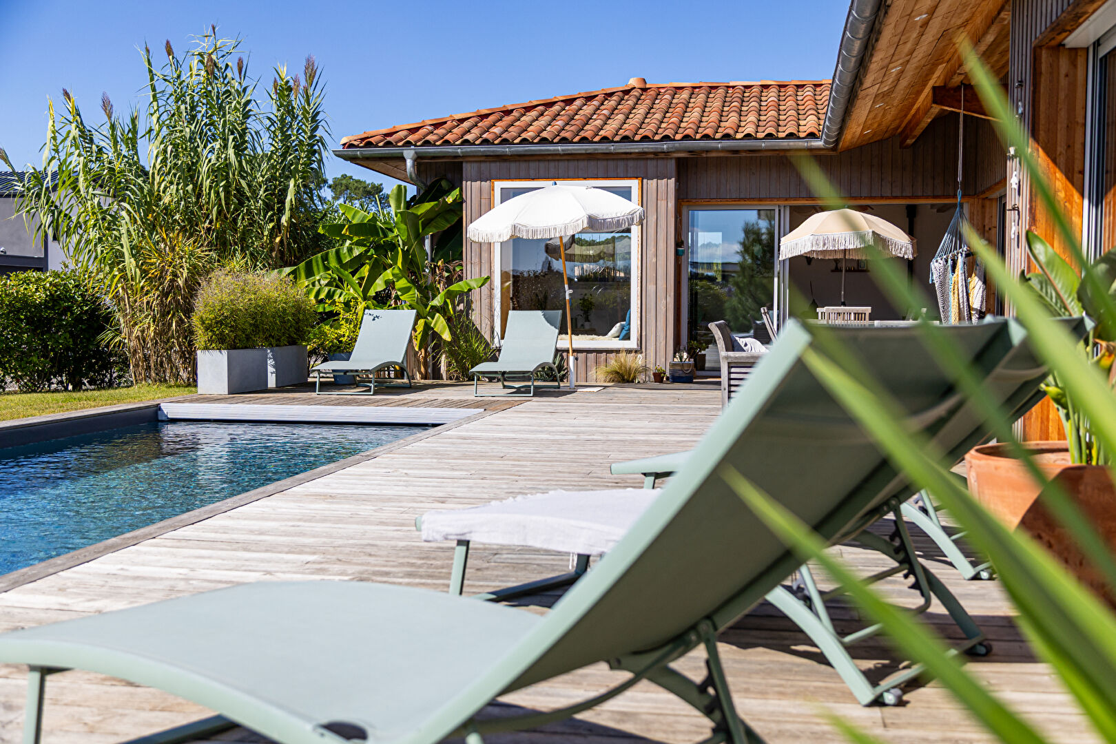 Découvrez cette magnifique maison récente, offrant des prestations haut de gamme et un confort absolu. Située au calme, dans un quartier recherché de Seignosse, elle bénéficie d'une proximité immédiate avec Hossegor et les plages sauvages de la côte landaise.