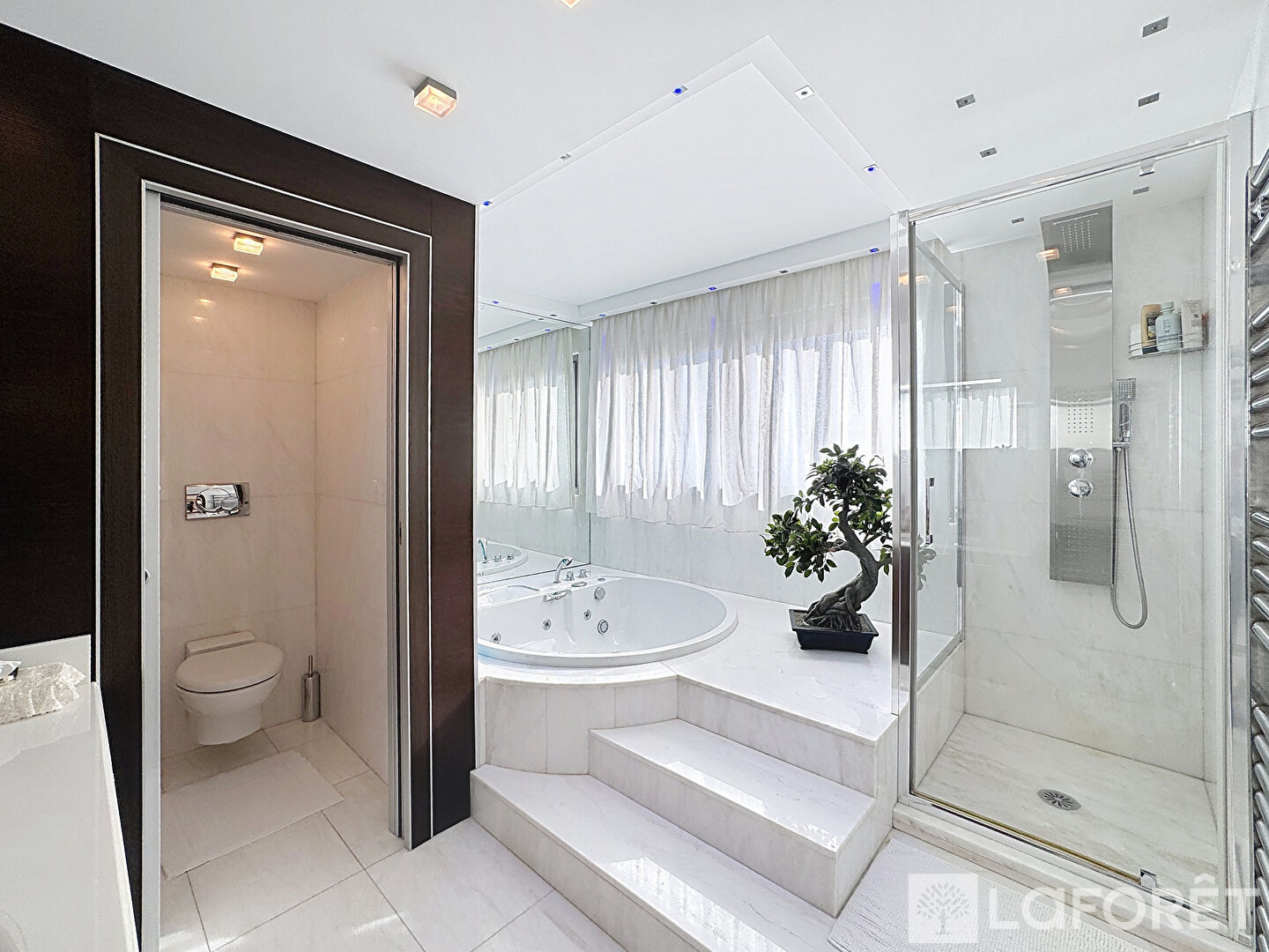 Véritable joyau de l'immobilier de luxe, cette propriété se distingue par ses prestations haut de gamme : domotique dernière génération, finitions en stuc vénitien, climatisation réversible, matériaux nobles et quatre parkings privatifs et couverts , garantissant confort, élégance et sérénité au quotidien.