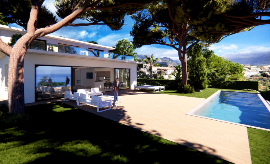 Une villa ultra moderne avec vue dominante sur les hauteurs de Roquebrune, dans un quartier calme et recherché, tout en étant située au sein d'un domaine privé.