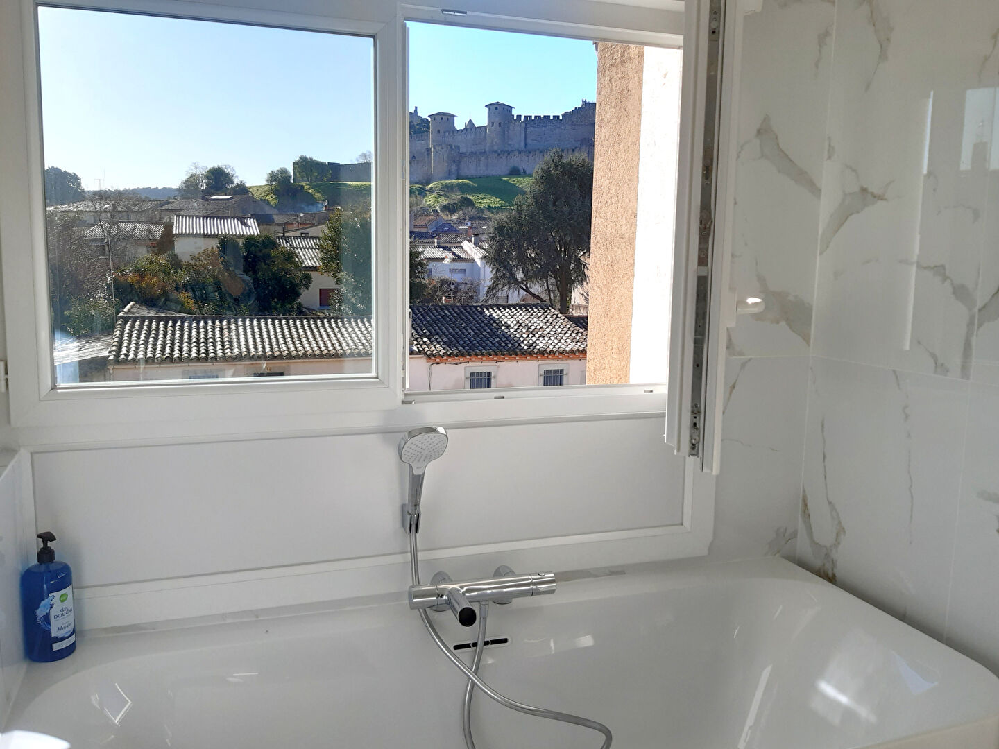 A Carcassonne, entre la Cité Médiévale et le centre-ville, proche du Pont-Vieux et du quartier Barbacane, grande maison bourgeoise exploitée en chambre d'hôtes, vendue meublée, avec vue sur la Cité.