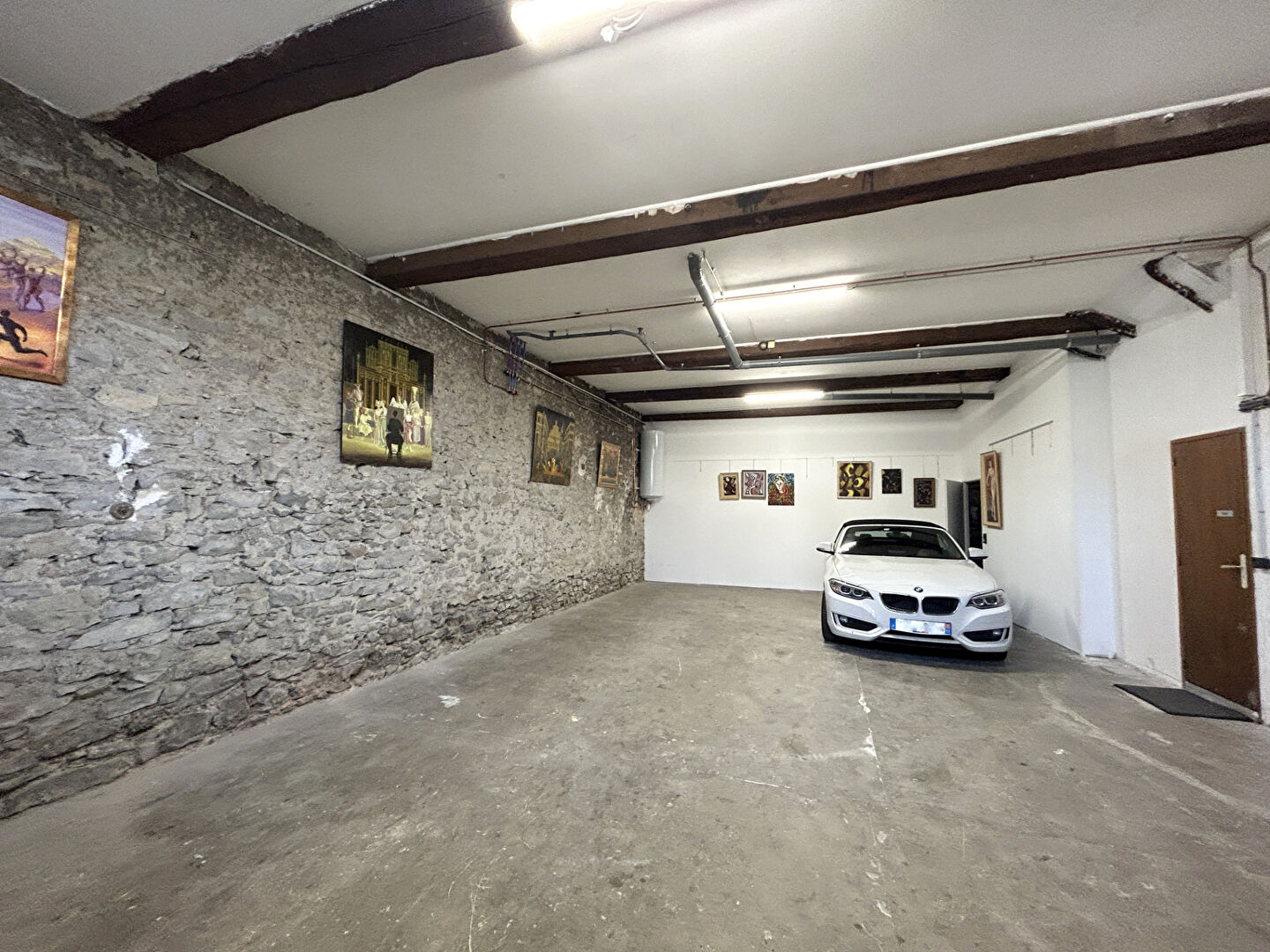 Elle se compose en rez-de-chaussée d'un grand appartement-loft avec entrée indépendante, et d'un garage pour 4 véhicules.