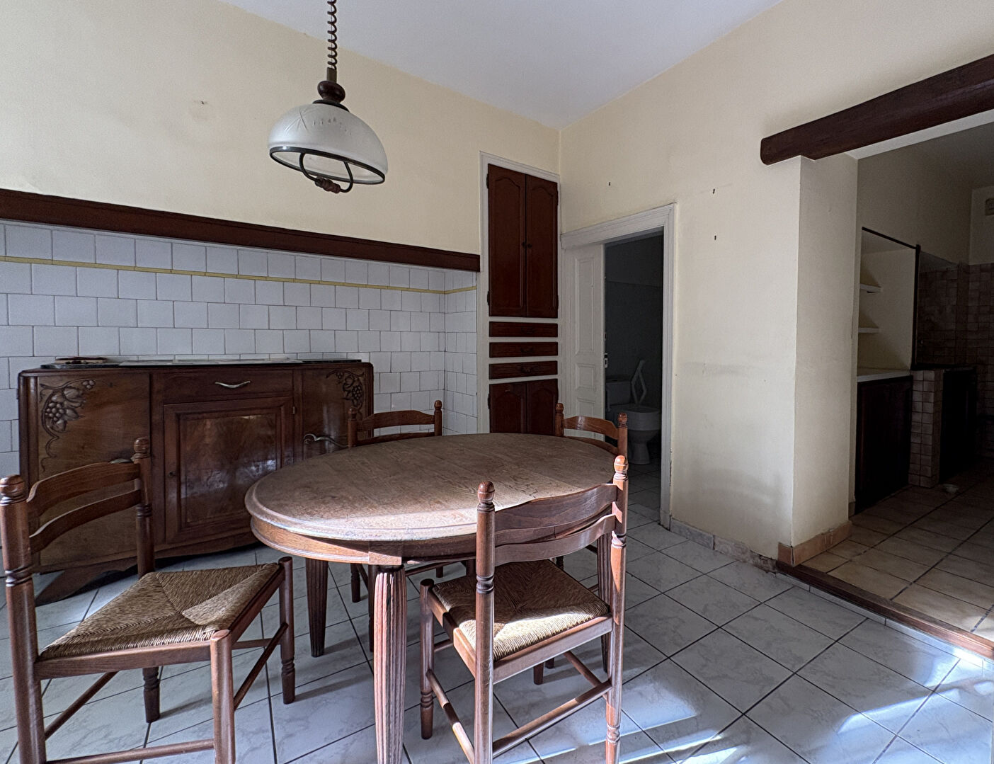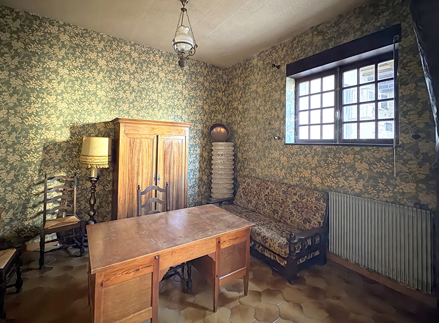 Elle se compose en rez-de-chaussée d'un grand séjour avec terrasse, d'une cuisine séparée à aménager, d'un bureau et d'une salle d'eau avec WC ; au premier étage, 4 chambres, une salle de bain et un WC ; et au dernier, un grenier avec fenêtres.