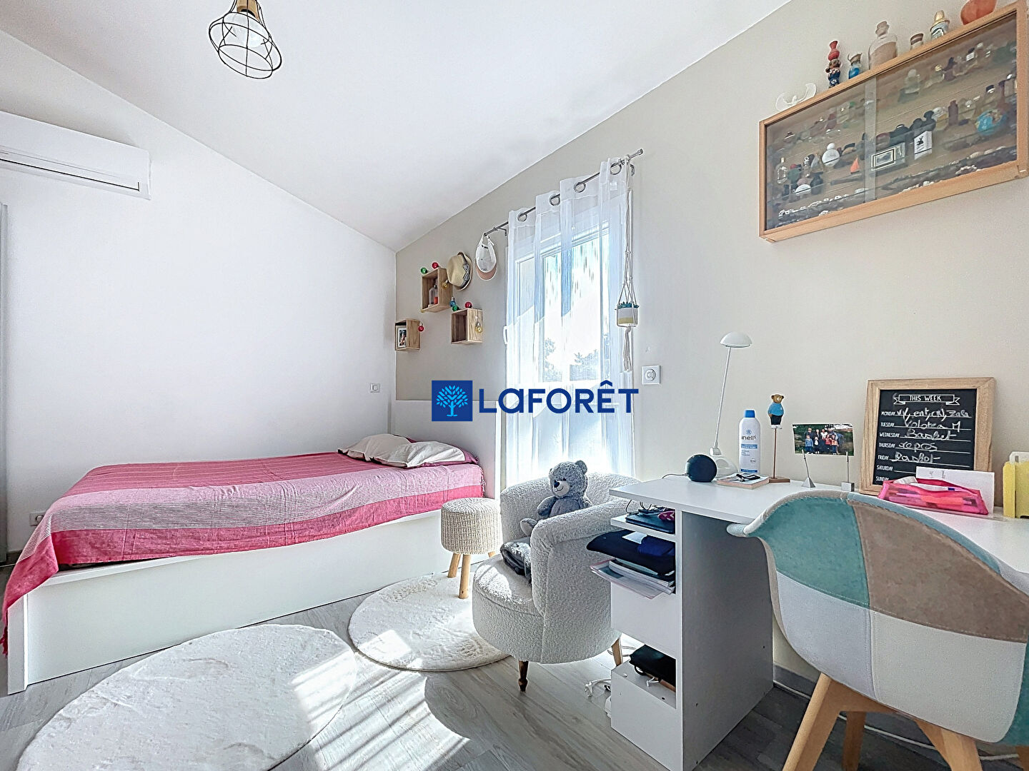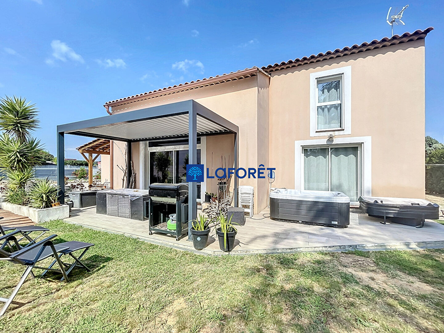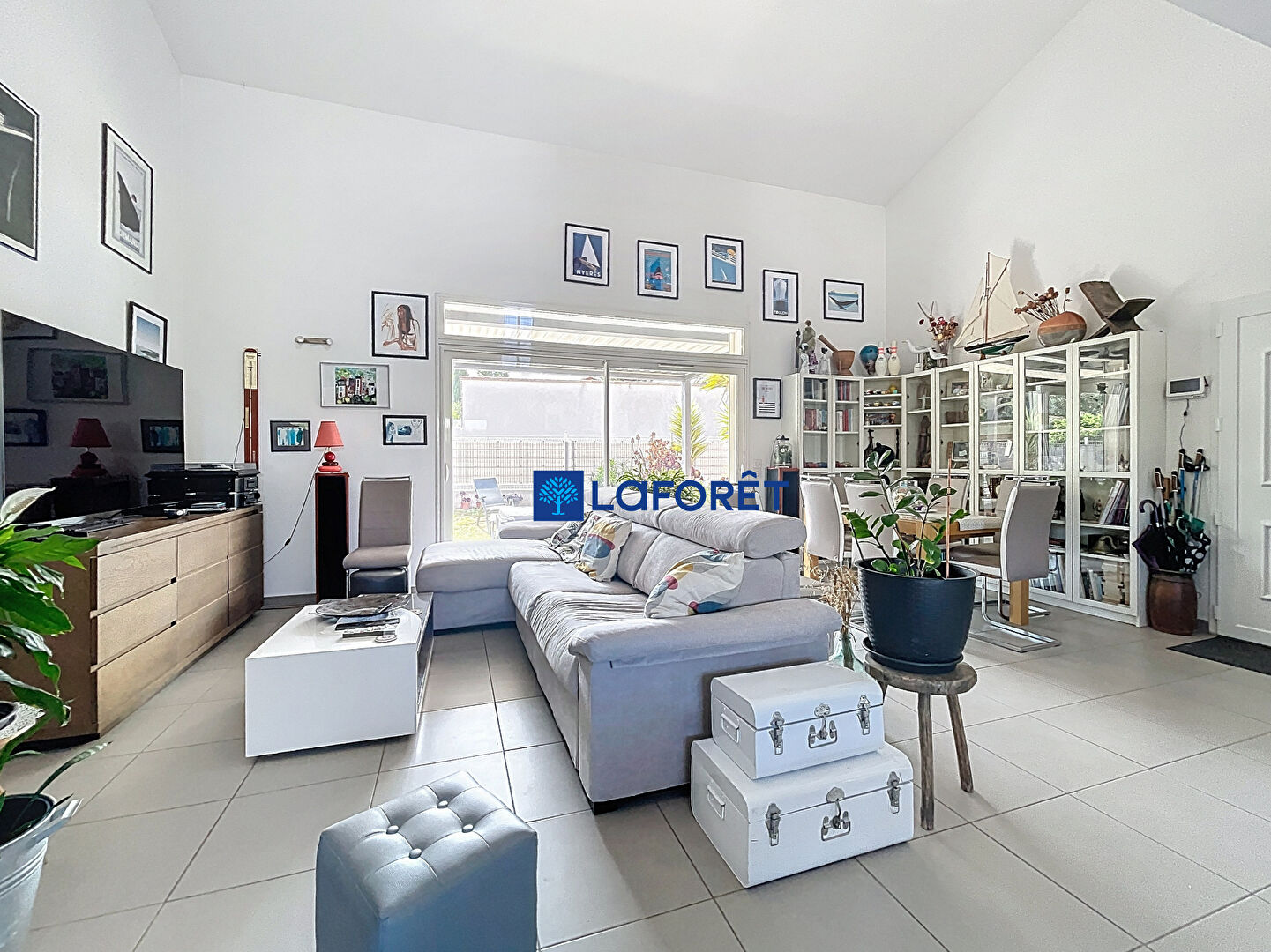 Implantée sur une parcelle d'environ 1 000 m², la propriété offre de beaux volumes et une luminosité remarquable. de plain pied, le séjour, avec cuisine ouverte, est sublimé par un plafond cathédrale et s'ouvre naturellement sur une terrasse ensoleillée équipée d'une pergola bioclimatique.