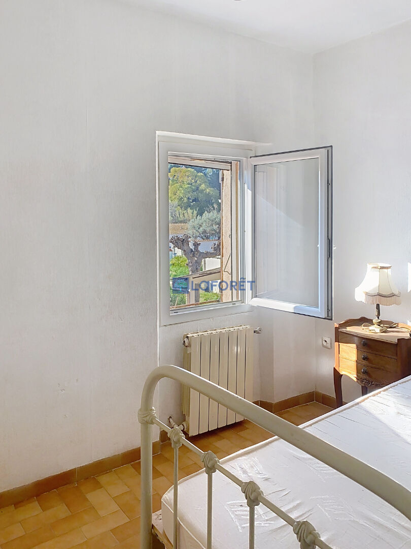 la villa se compose d'un hall d'entrée, une cuisine, un séjour avec cheminée, une salle de bains et un WC. A l'étage, trois chambres dont une avec terrasse, et une salle d'eau avec WC.