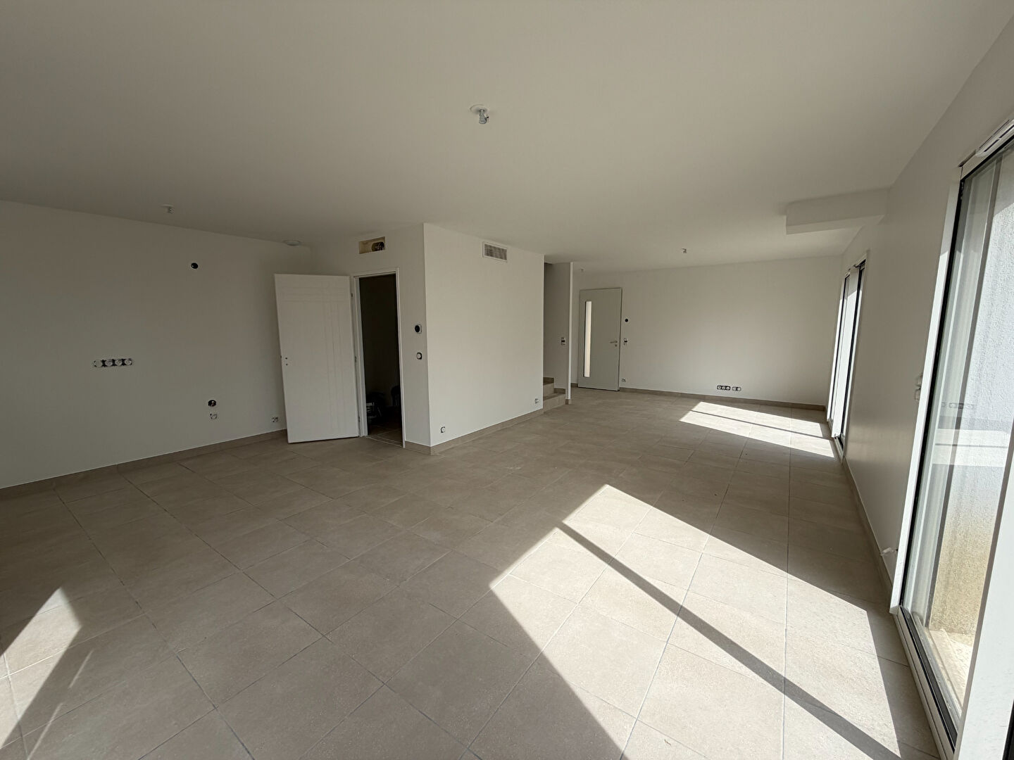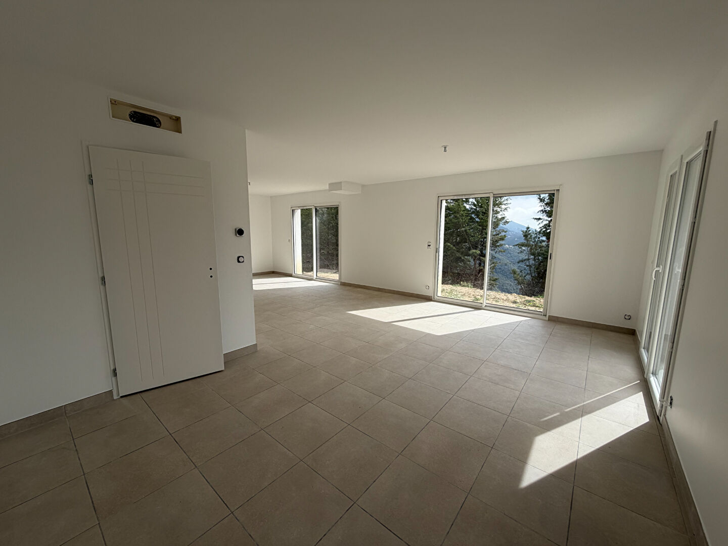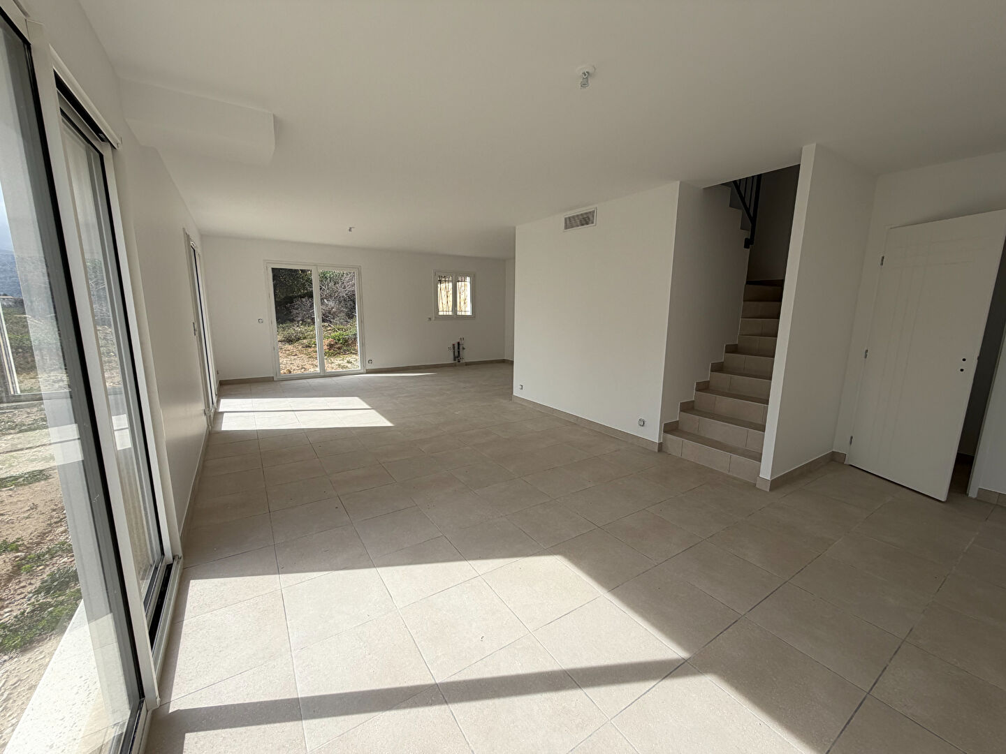Dès l'entrée, on découvre un bel espace de vie avec séjour et cuisine ouverte, complété par un cellier. Les grandes baies vitrées laissent entrer la lumière et offrent une vraie ouverture sur l'extérieur, très agréable au quotidien.