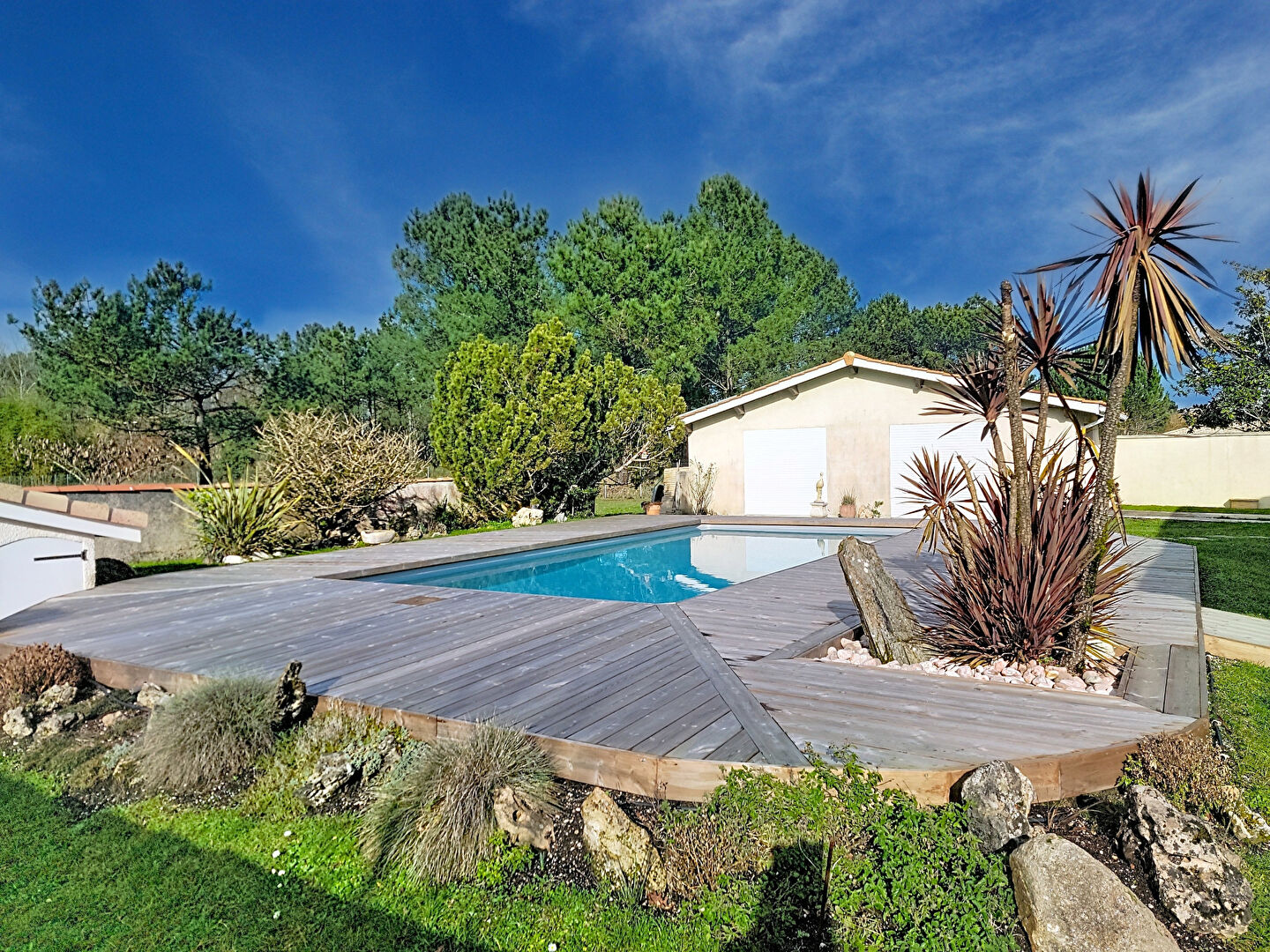 À l'extérieur, vous trouverez un grand garage de 57m², une piscine parfaitement intégrée au jardin qui vous invite à la détente dans un cadre verdoyant et intime.