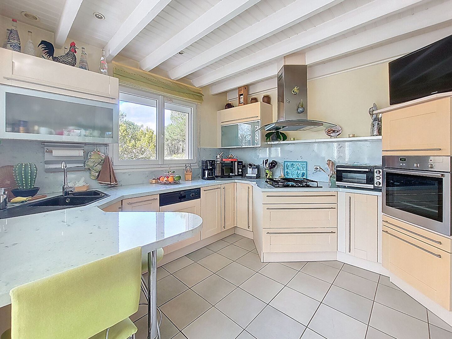 Implantée sur un grand terrain paysager, elle offre de très beaux volumes et de belles pièces de vie baignées de lumière.