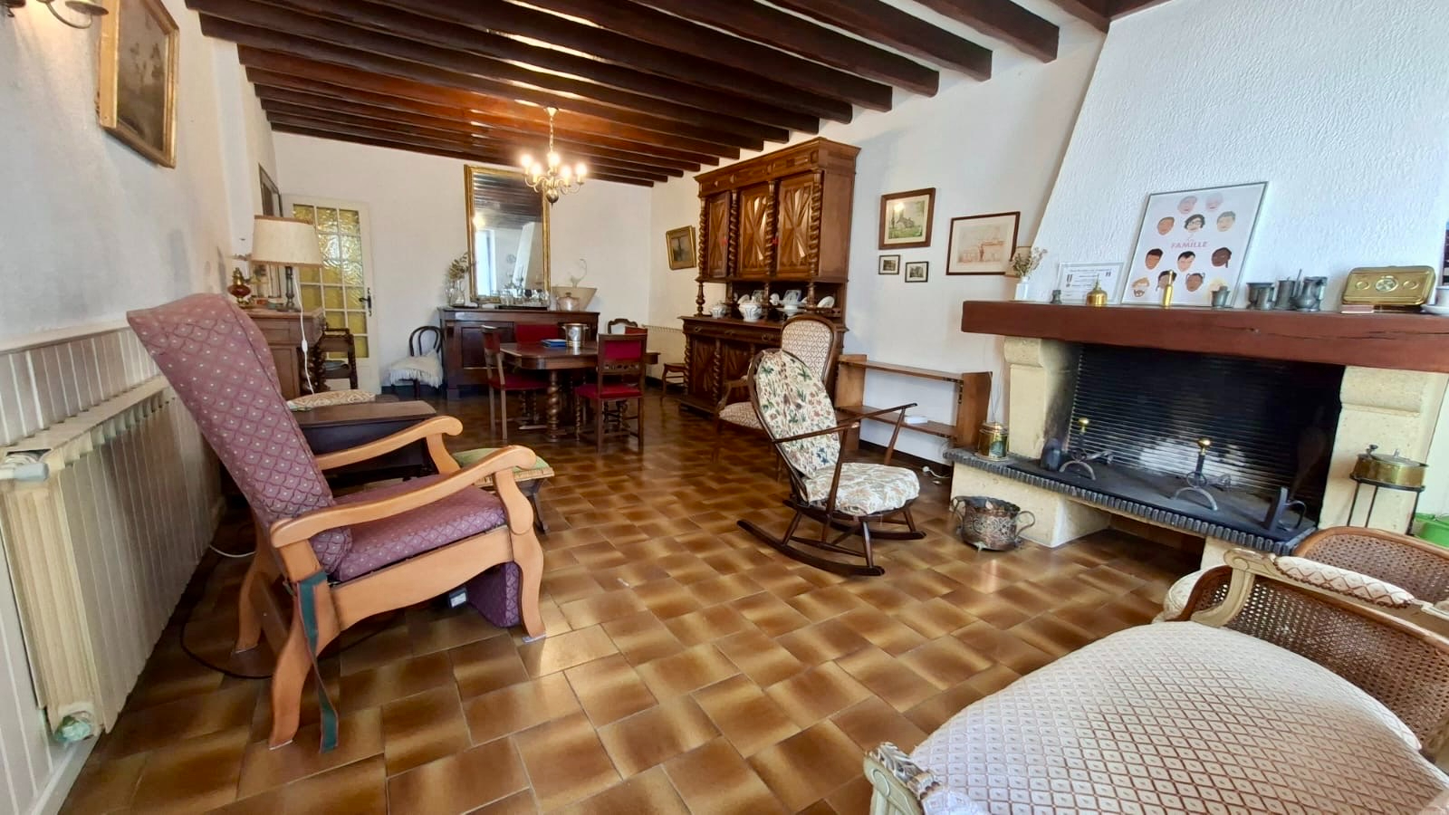 La maison de maître comprenant en rez-de-chaussée, d'un joli séjour, d'un grand et lumineux salon, d'une cuisine dinatoire, de deux chambres de plus de 13m², d'une salle d'eau et d'un wc indépendant.