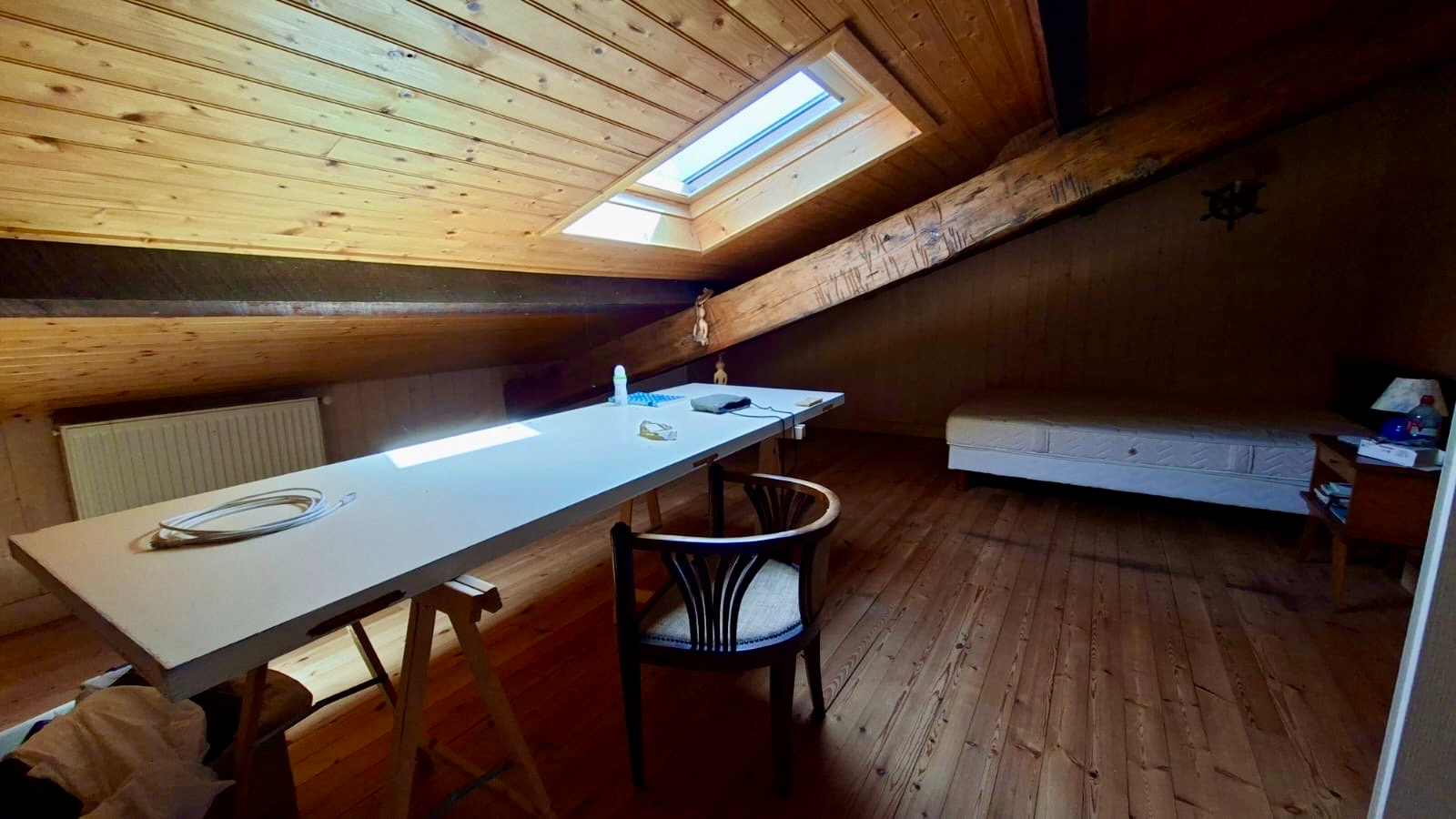 A l'étage se trouve, une grande pièce bureau en mezzanine, une salle d'eau et trois chambres.