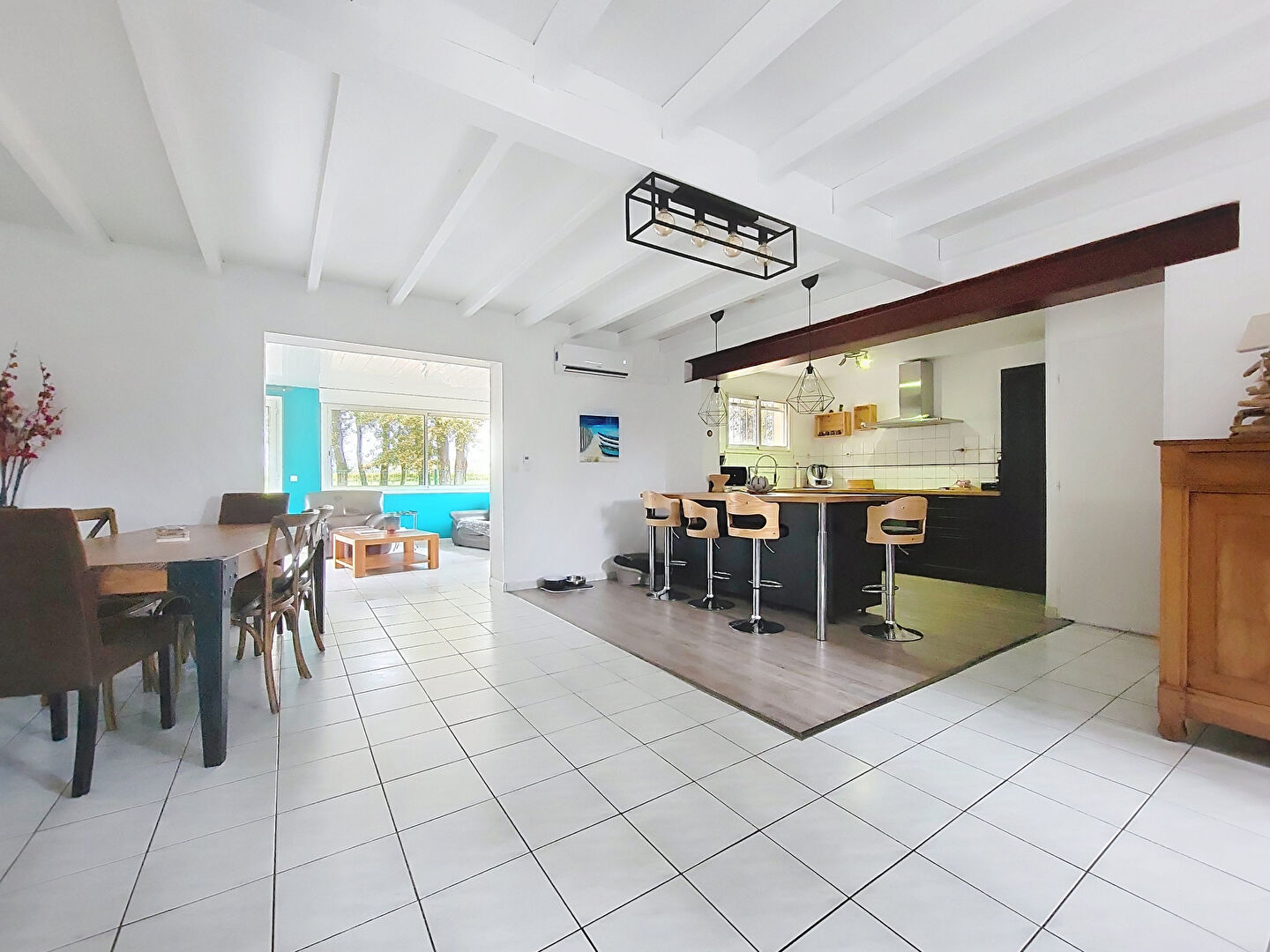 Le rez-de-chaussée se compose d'une grande pièce de vie lumineuse avec cuisine ouverte équipée et aménagée, espace salle à manger et salon, de deux chambres, dont une grande chambres avec dressing, d'une salle d'eau, d'un WC, d'une buanderie.