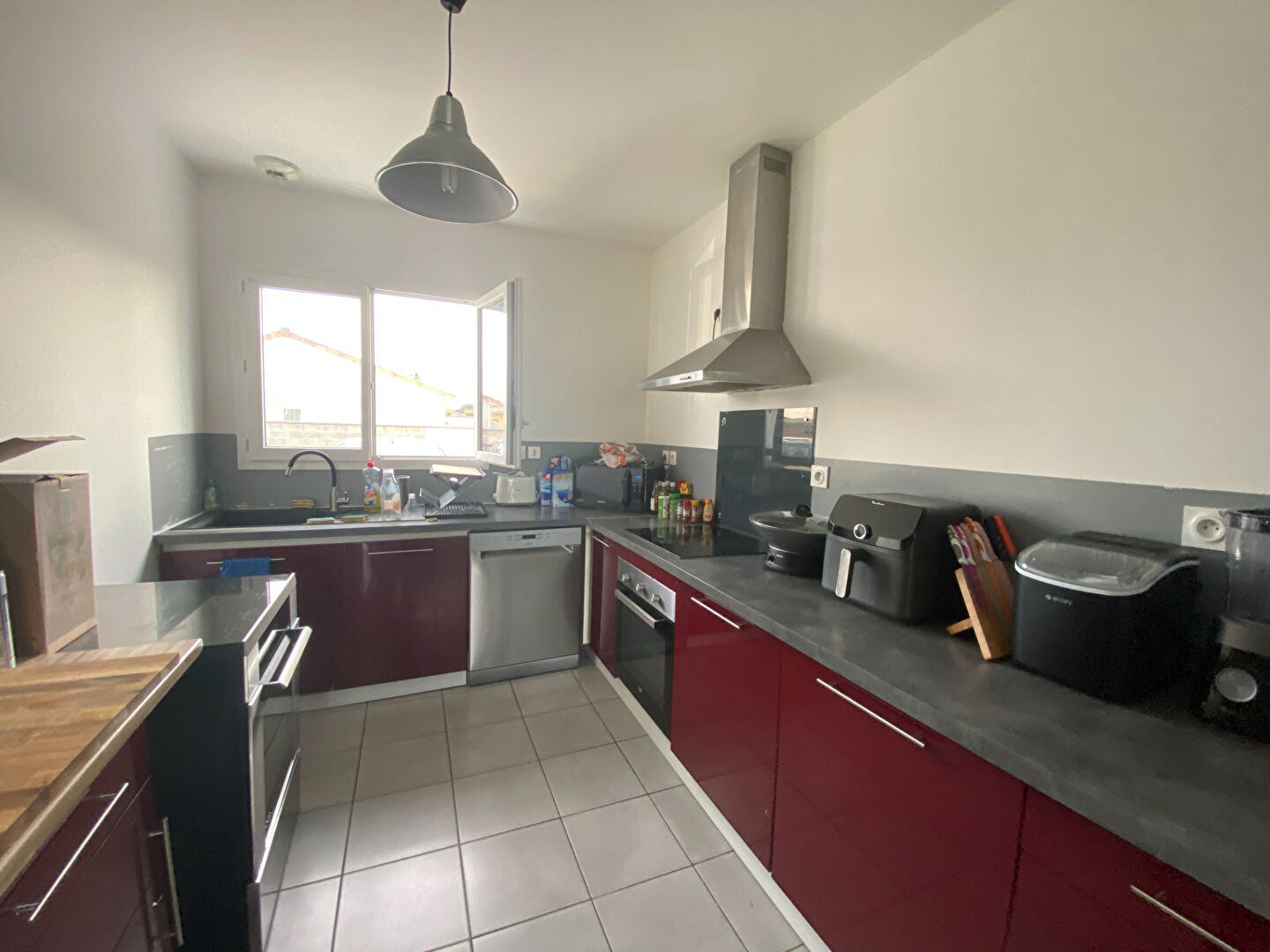 C'est une maison de ville récente encore sous garantie décennale. Elle compte trois chambres de 9 m² à 12 m², une cuisine américaine équipée, un cellier, une salle d'eau et deux toilettes. Un chauffage à air pulsé réversible est installé dans cette maison. Elle est en bon état général. Des fenêtres en pvc double vitrage contribuent avec des volets roulants à une bonne isolation thermique.