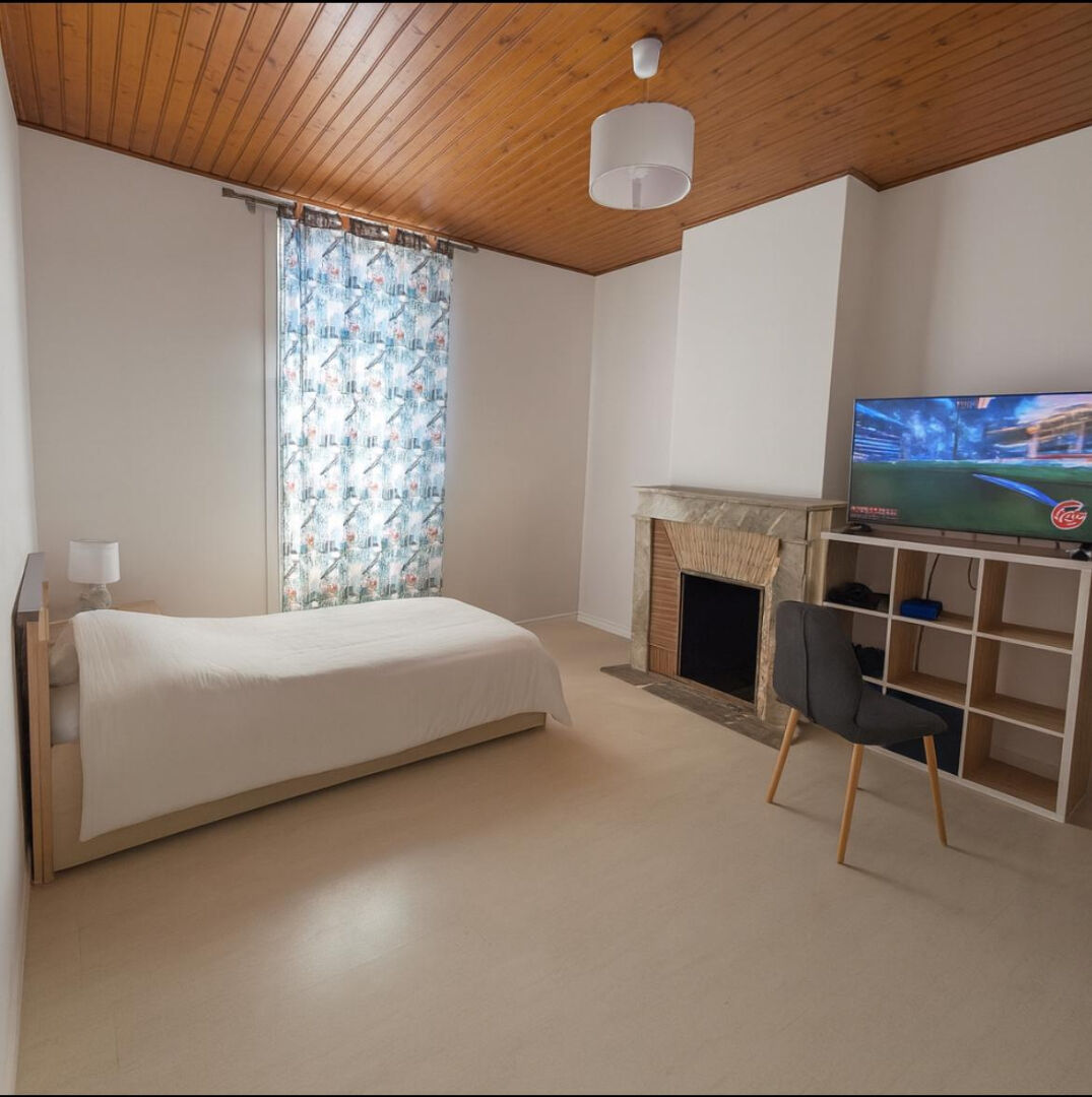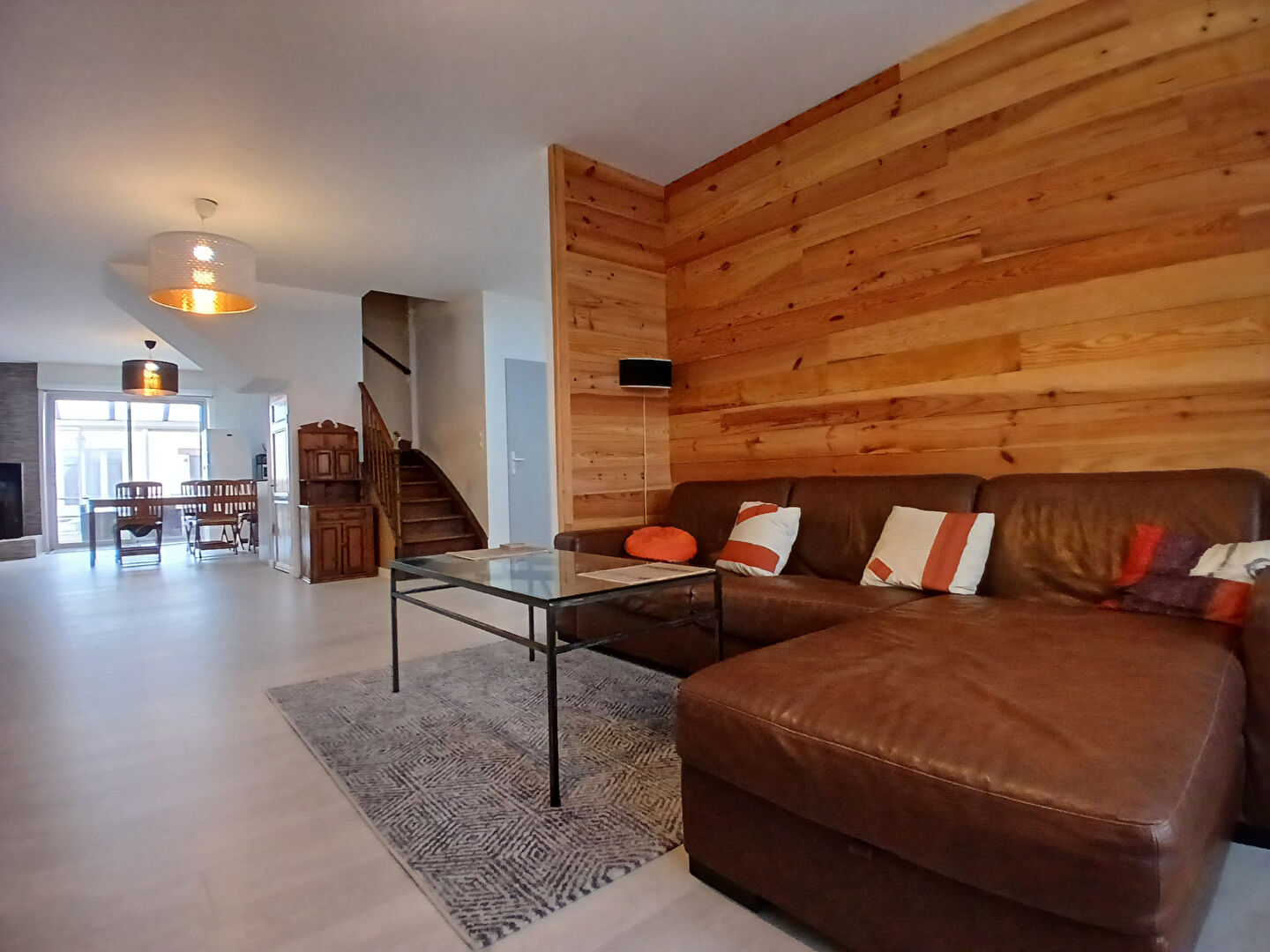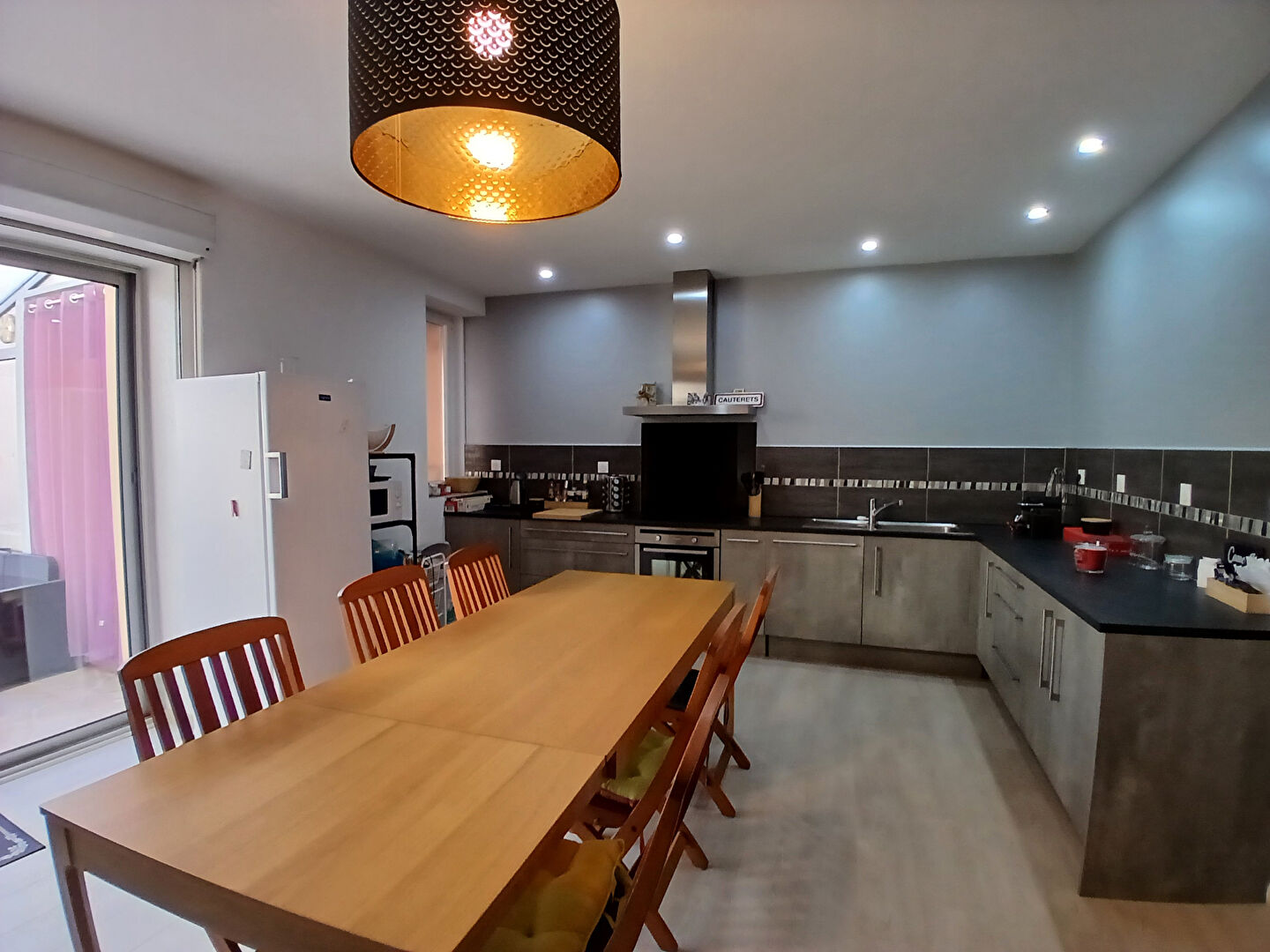 La maison est composée au rdc d'une entrée, d'un vaste séjour/cuisine de 68m², wc ; à l'étage deux grandes chambres (20 et 16 m²), un bureau et une salle de bain (baignoire + douche).