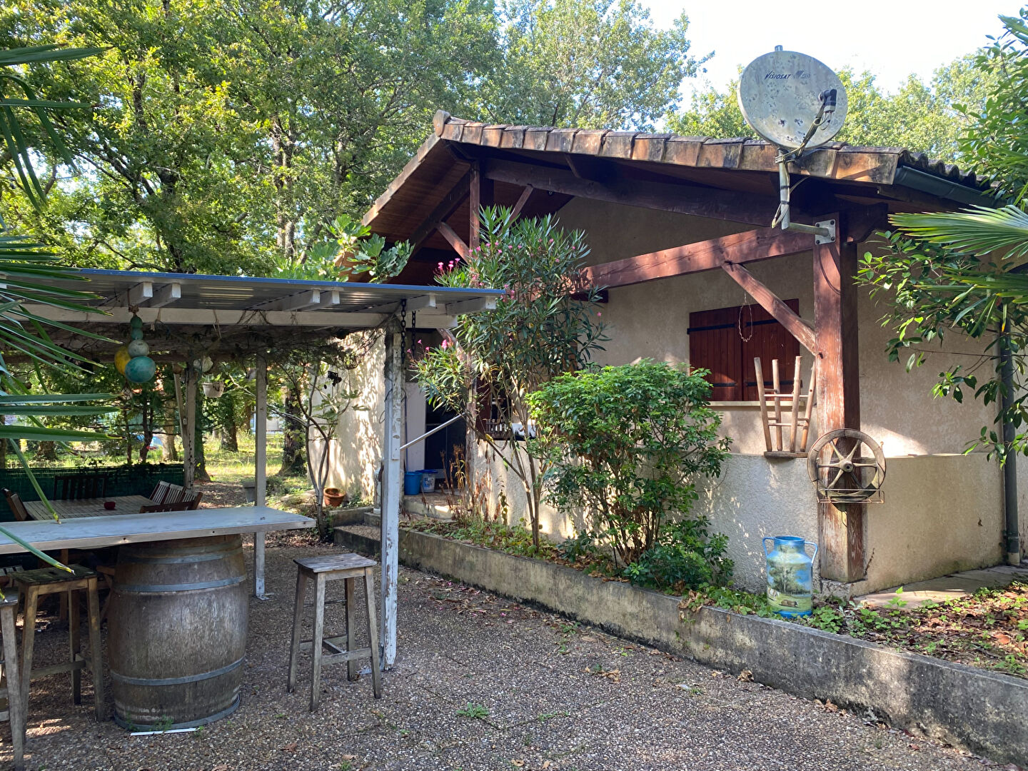 Pour une bonne isolation thermique, les fenêtres sont en bois à double vitrage. Le terrain de la propriété est de 7403 m².