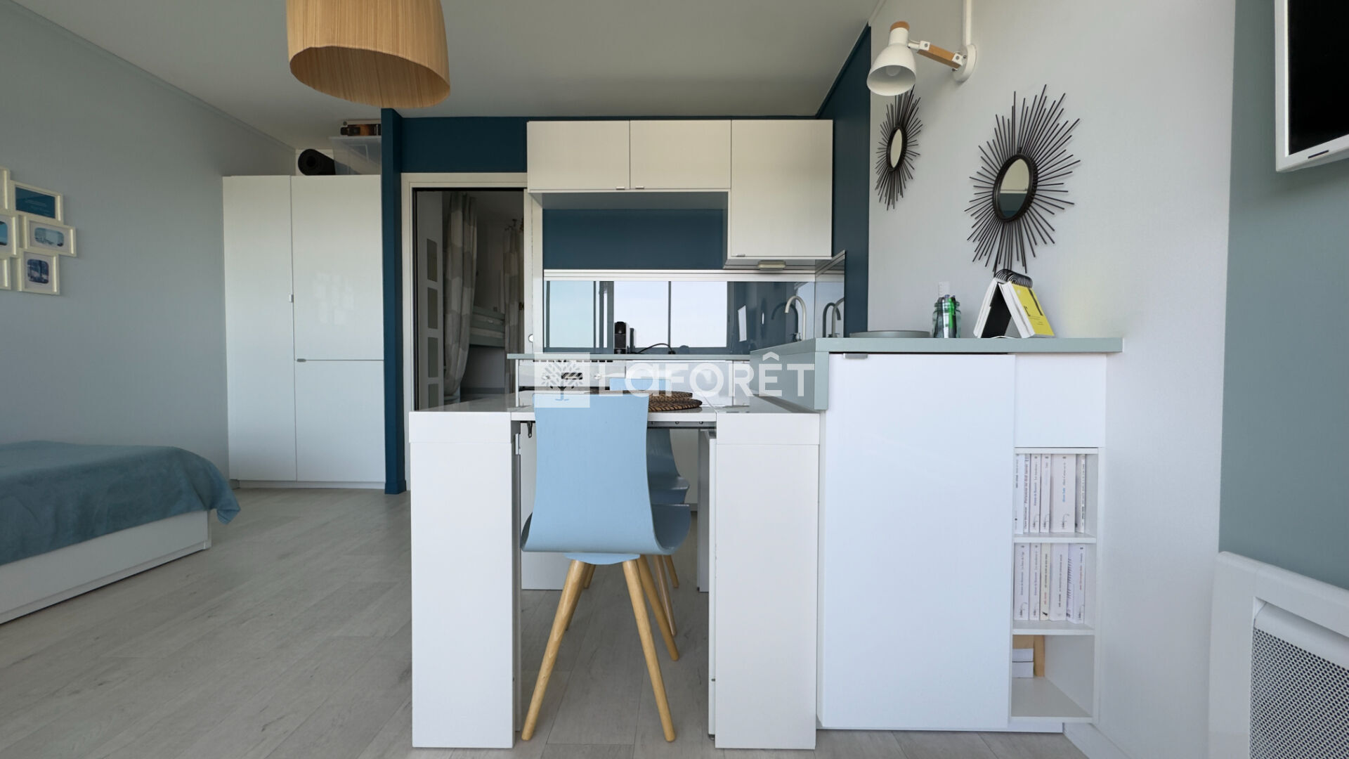 Situé en étage élevé, l'appartement offre une pièce de vie lumineuse avec cuisine aménagée, prolongée par une loggia fermée idéale pour profiter de l'extérieur toute l'année. Vous trouverez également un coin nuit à l'entrée, une salle d'eau ainsi qu'un WC séparé.