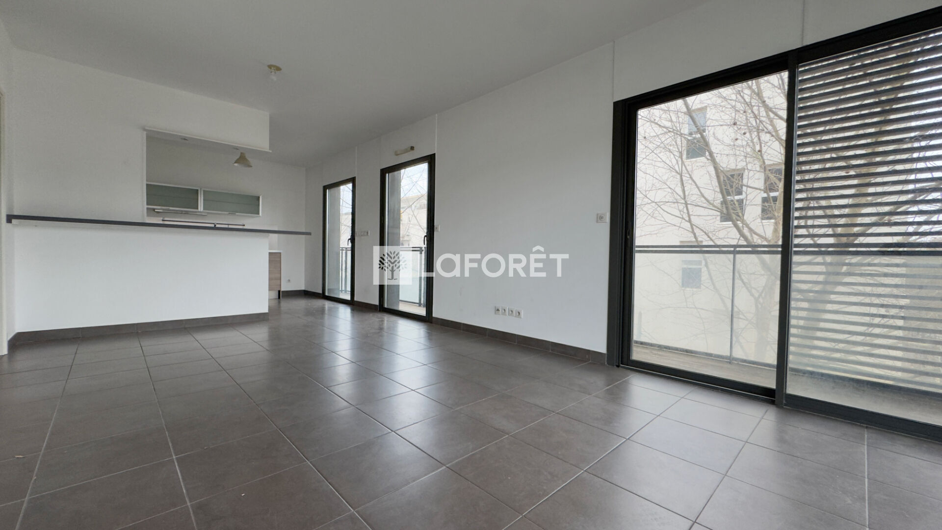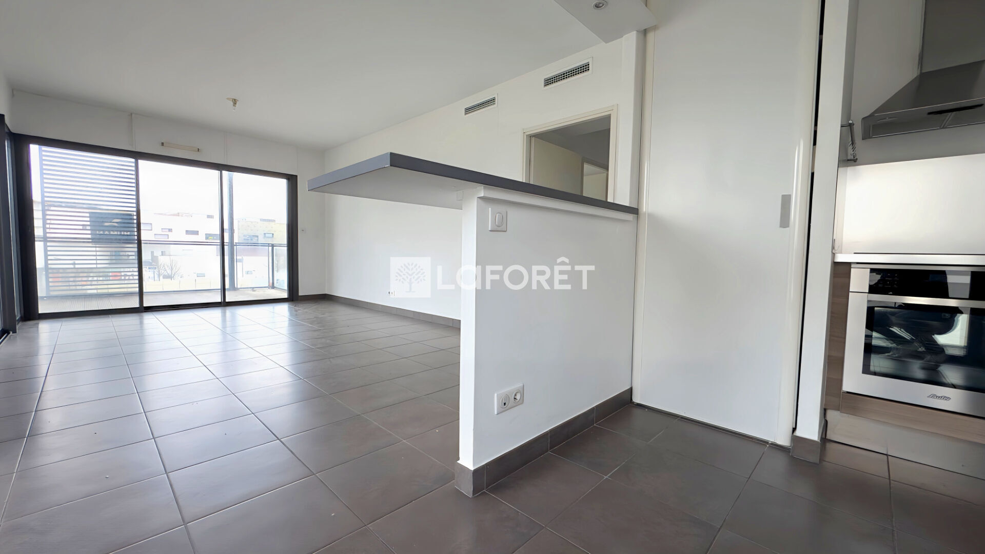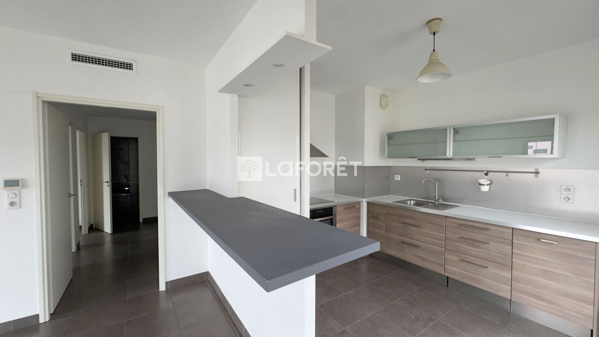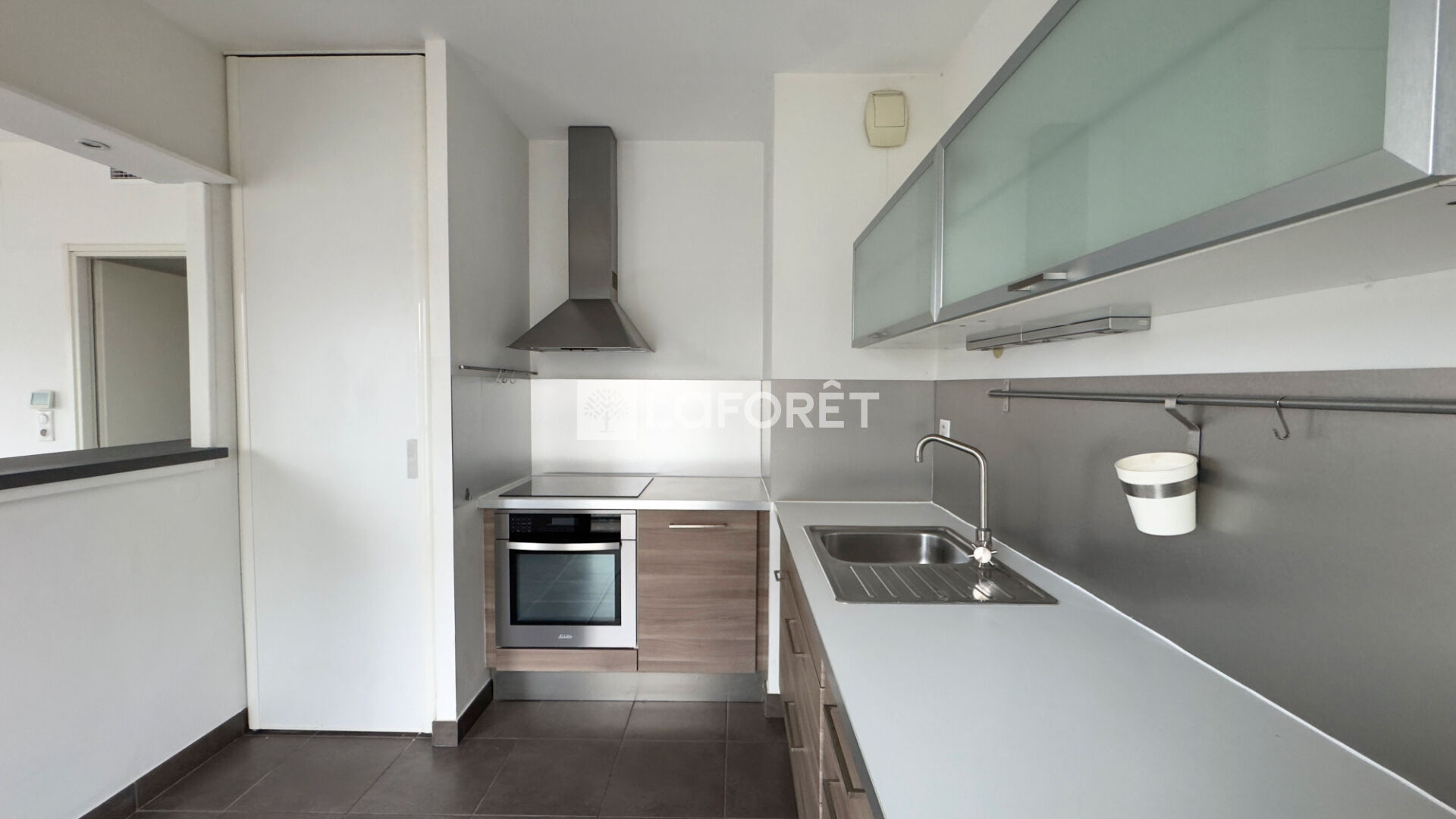 L'appartement se compose d'une entrée avec placard, d'une belle pièce de vie avec cuisine aménagée ouvrant sur une agréable terrasse de 15 m². Il comprend également deux chambres avec placards, une salle de bains et un WC séparé.
