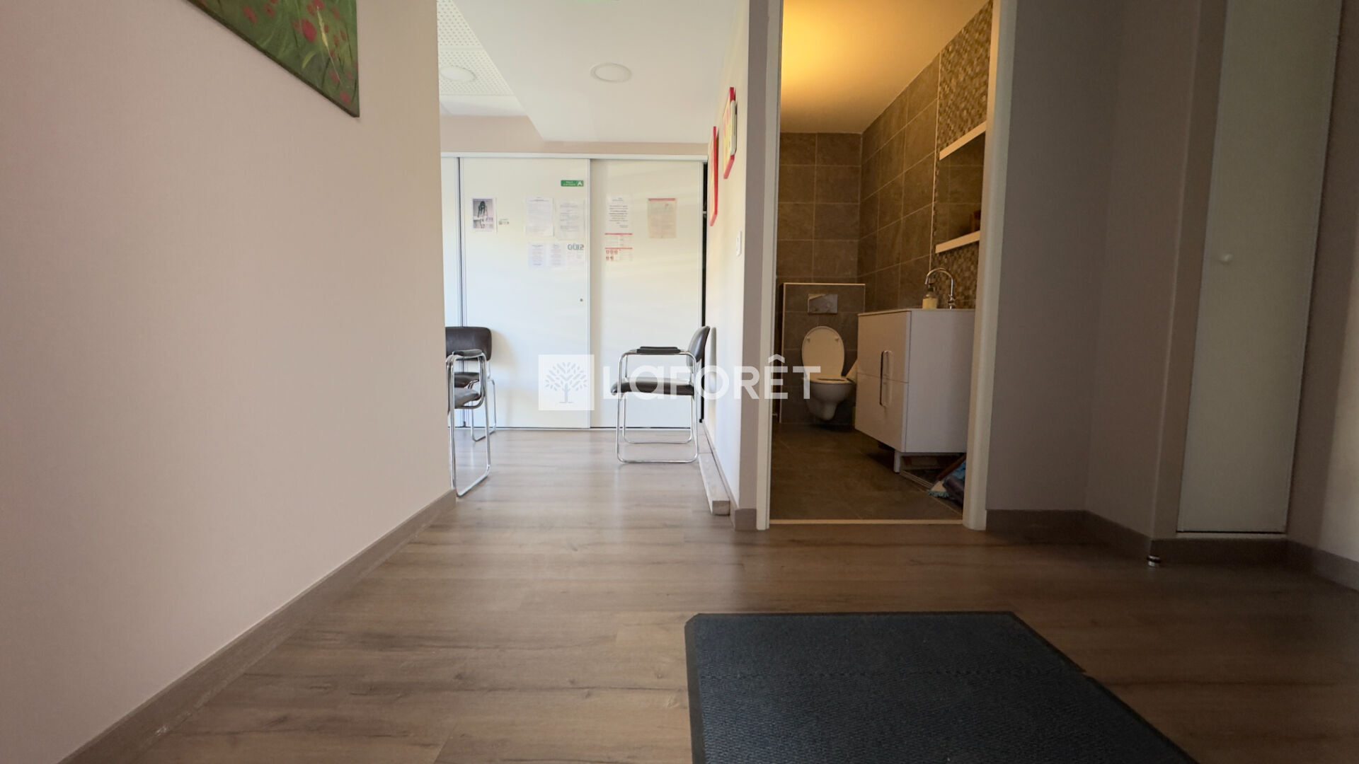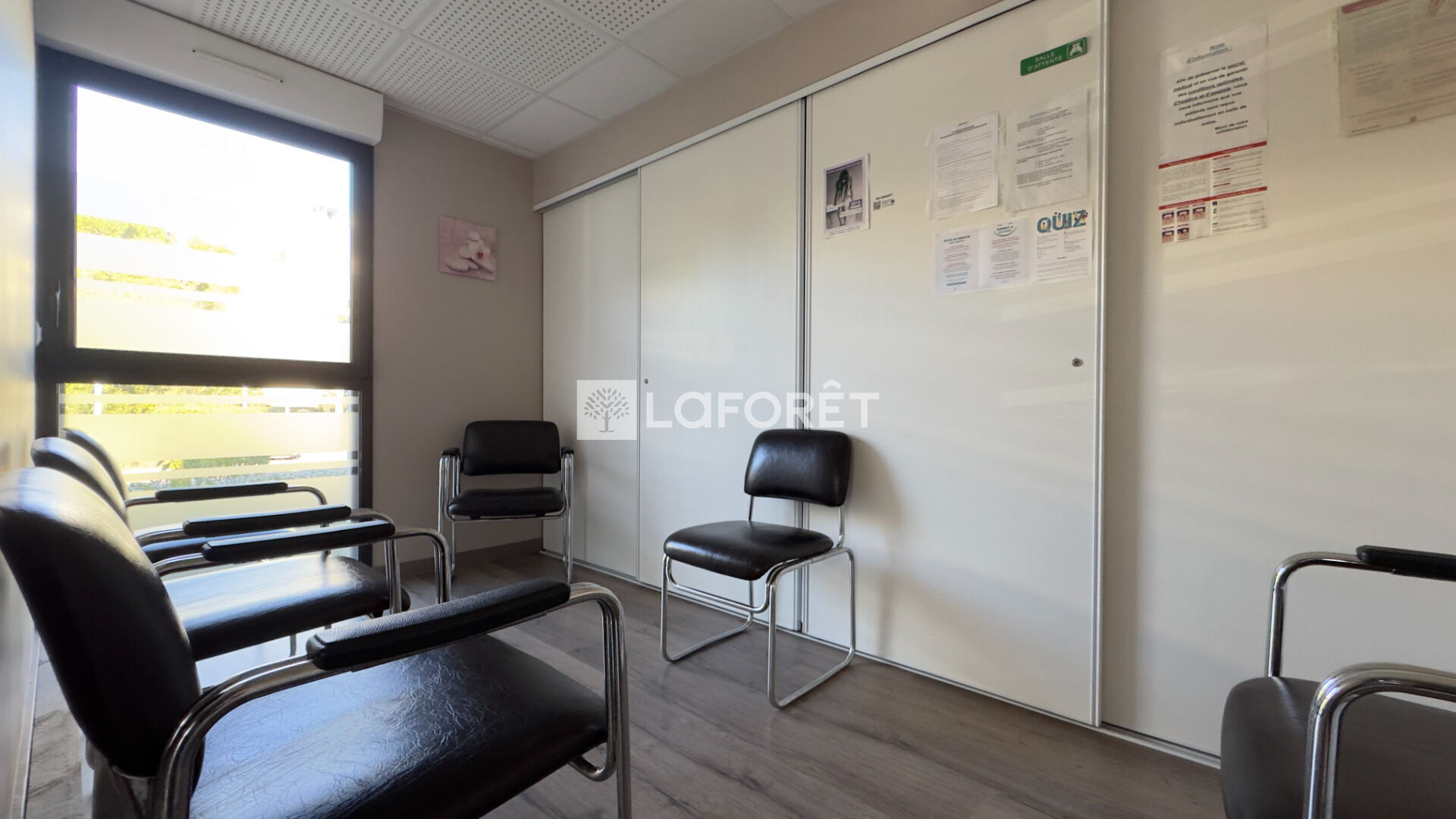Il comprend une pièce principale ouvrant sur une terrasse de 6,5 m², une cuisine semi-ouverte aménagée, une salle d'attente avec placards, ainsi qu'un WC indépendant.