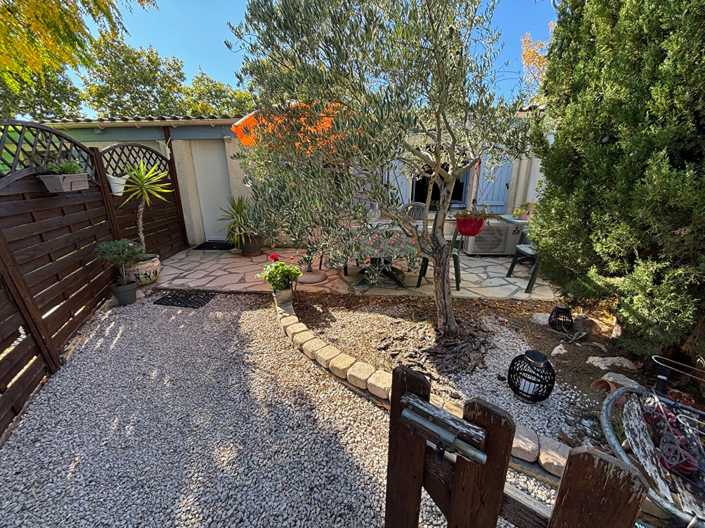 Le logement comprend une pièce principale avec coin nuit, une cuisine entièrement équipée, une salle d'eau avec WC, ainsi qu'un jardin privatif. Il dispose également de la climatisation réversible et d'une place de stationnement.