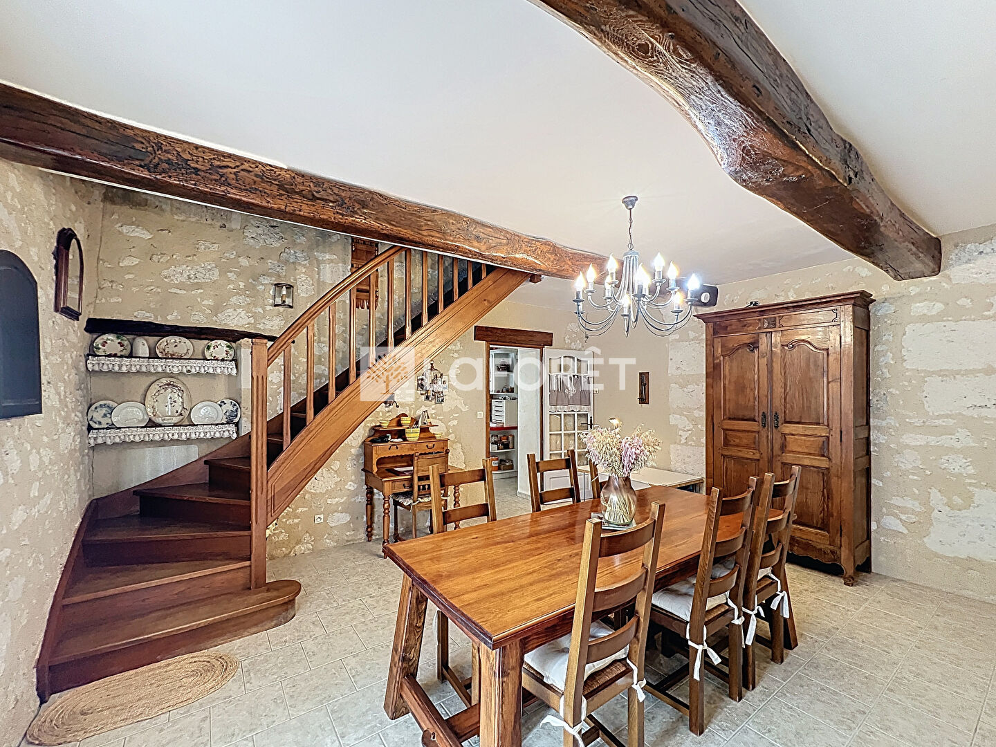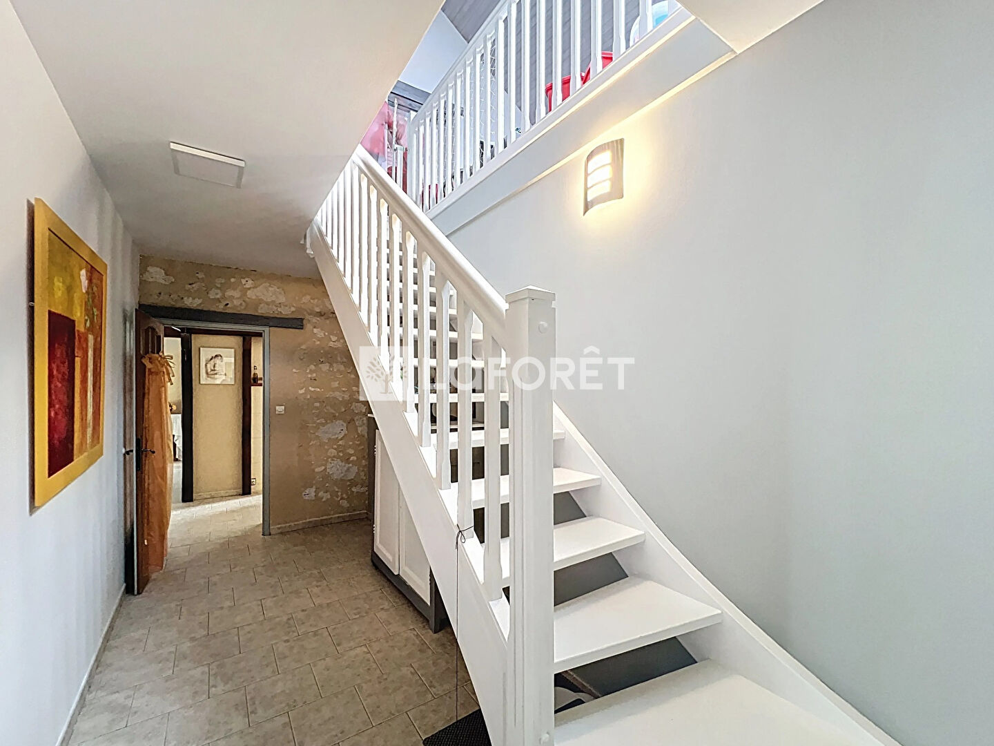 Vous y découvrirez en rez de chaussée une salle à manger conviviale avec une superbe source au charme unique, une cuisine indépendante, un dégagement, un WC, une arrière-cuisine, un garage attenant et une cave.