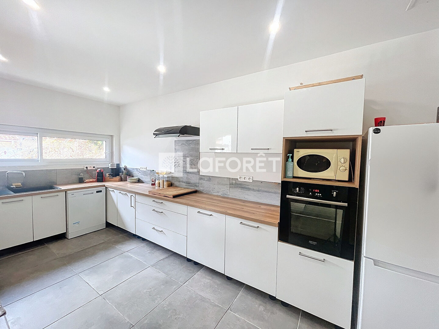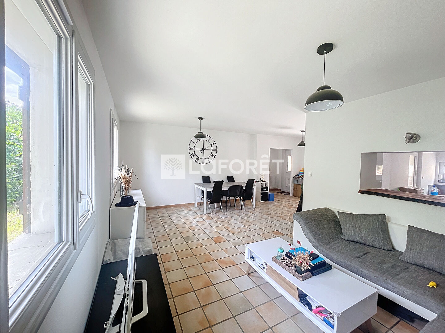 Dès l'entrée, vous serez séduit par un salon-séjour lumineux d'environ 32m², s'ouvrant sur une cuisine aménagée et équipée d'environ 14m², offrant un espace convivial pour toute la famille.