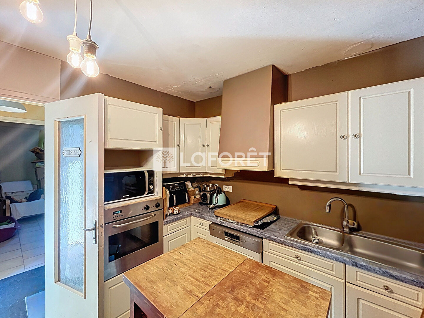 Dès l'entrée, vous découvrirez un salon-séjour qui constitue un espace de vie convivial. La maison dispose également d'une cuisine indépendante ainsi que d'une véranda, idéale pour profiter d'un espace supplémentaire ouvert sur le jardin.