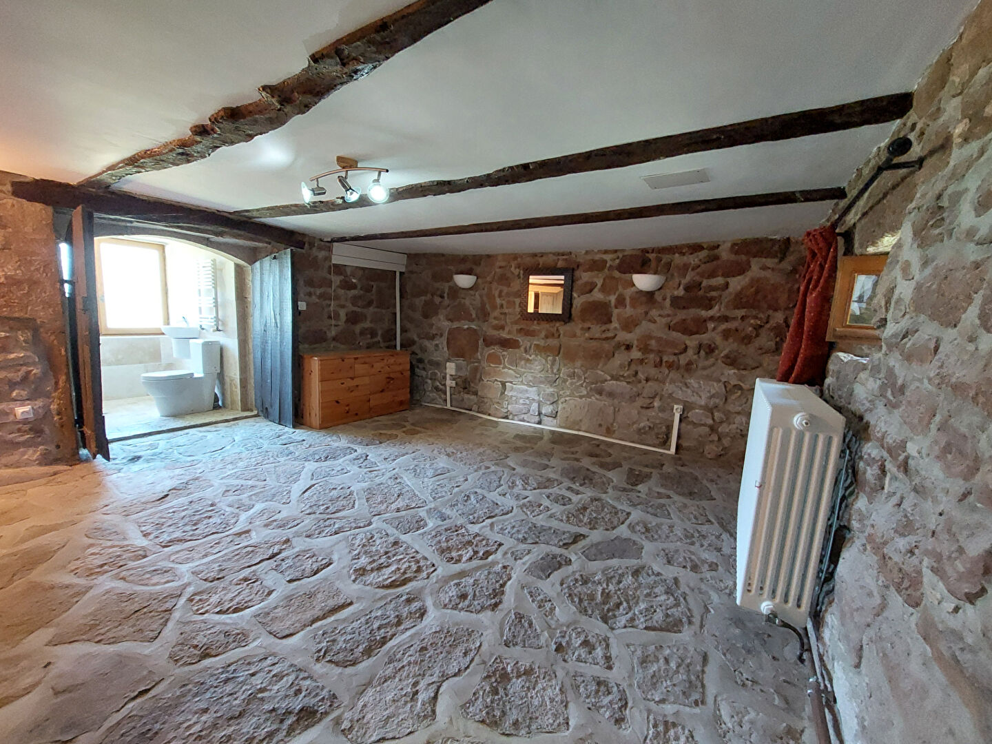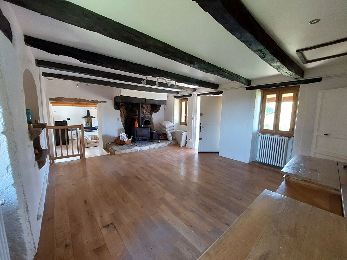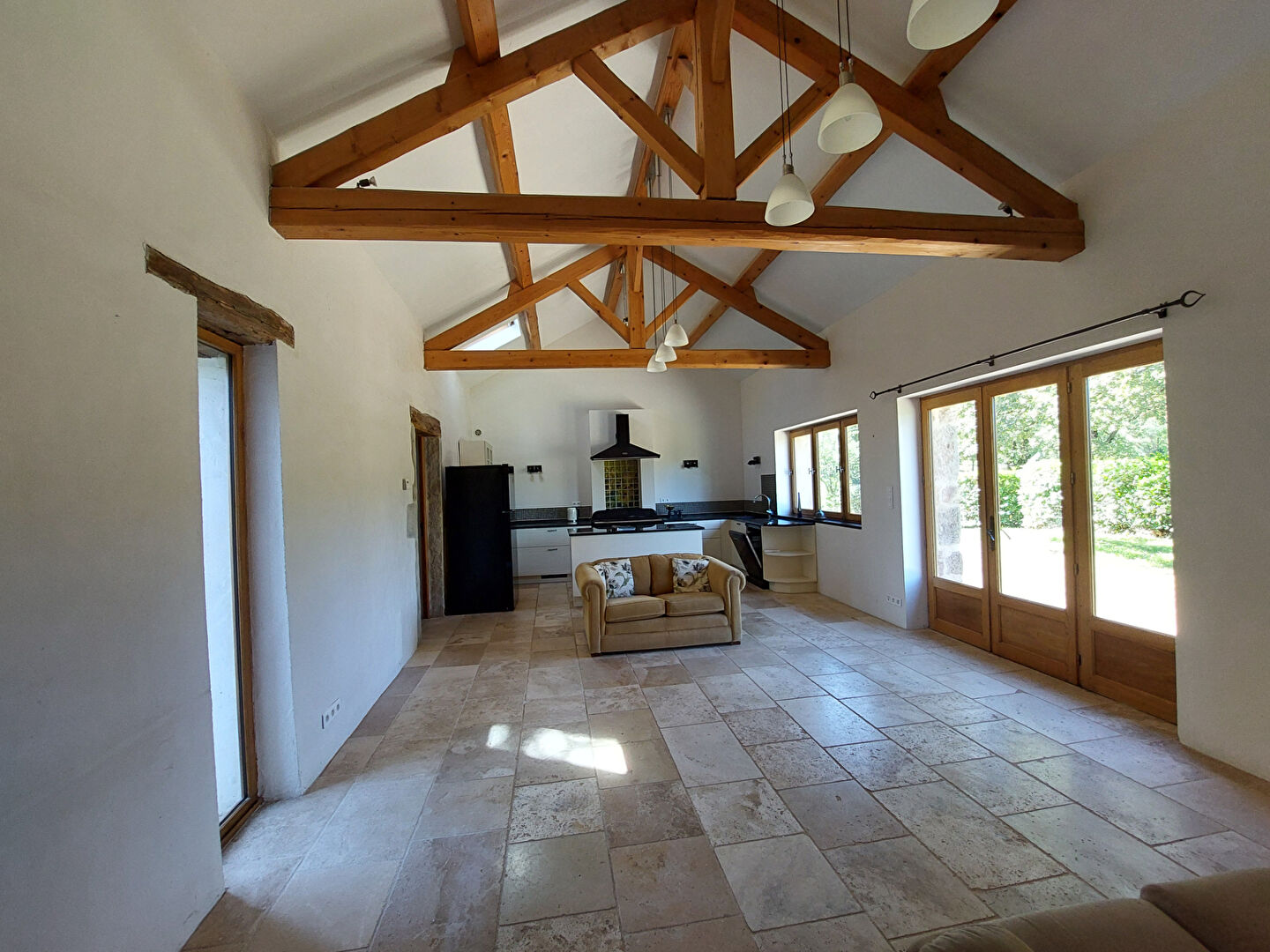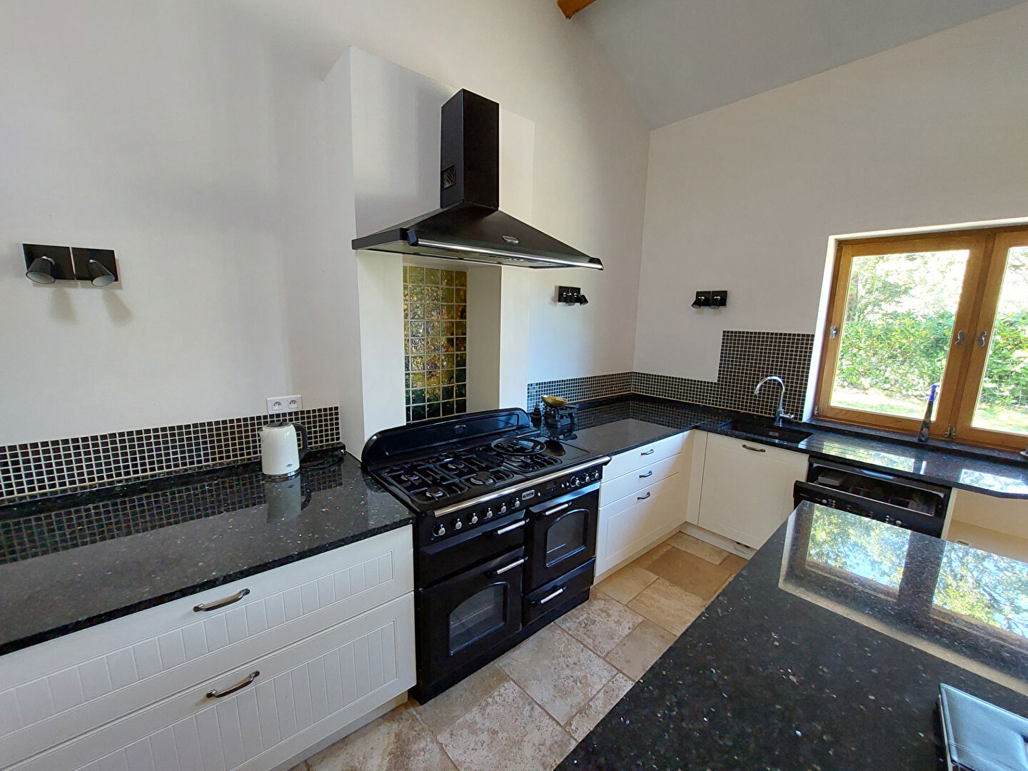 Le bien vous offre une grande cuisine/salle à manger de près de 40 m2 avec cuisine haut de gamme et chauffage au sol, un salon de 27 m2 (poêle à bois) et deux chambres (une avec salle de bains et une avec salle d'eau).