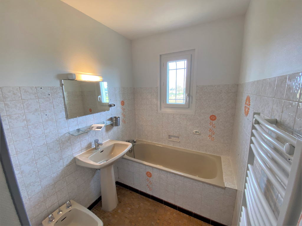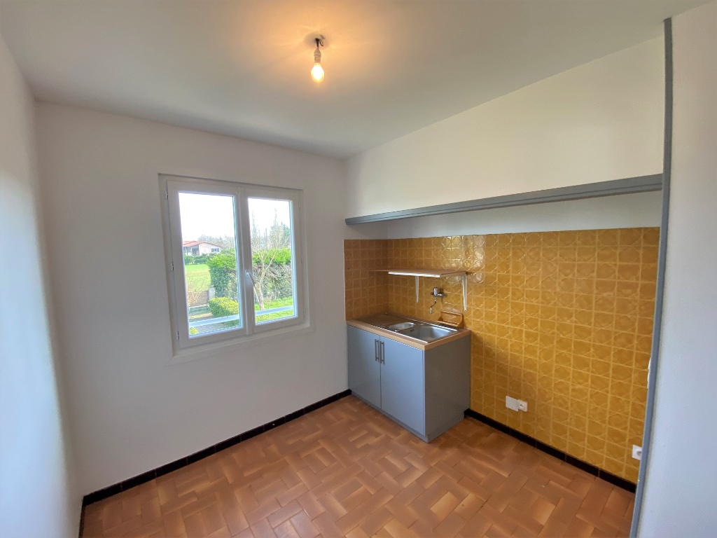 La maison est composée à l'étage d'une cuisine, d'un salon / salle à manger donnant sur un balcon, 2 chambres, d'une salle de bains et d'un WC séparé.
