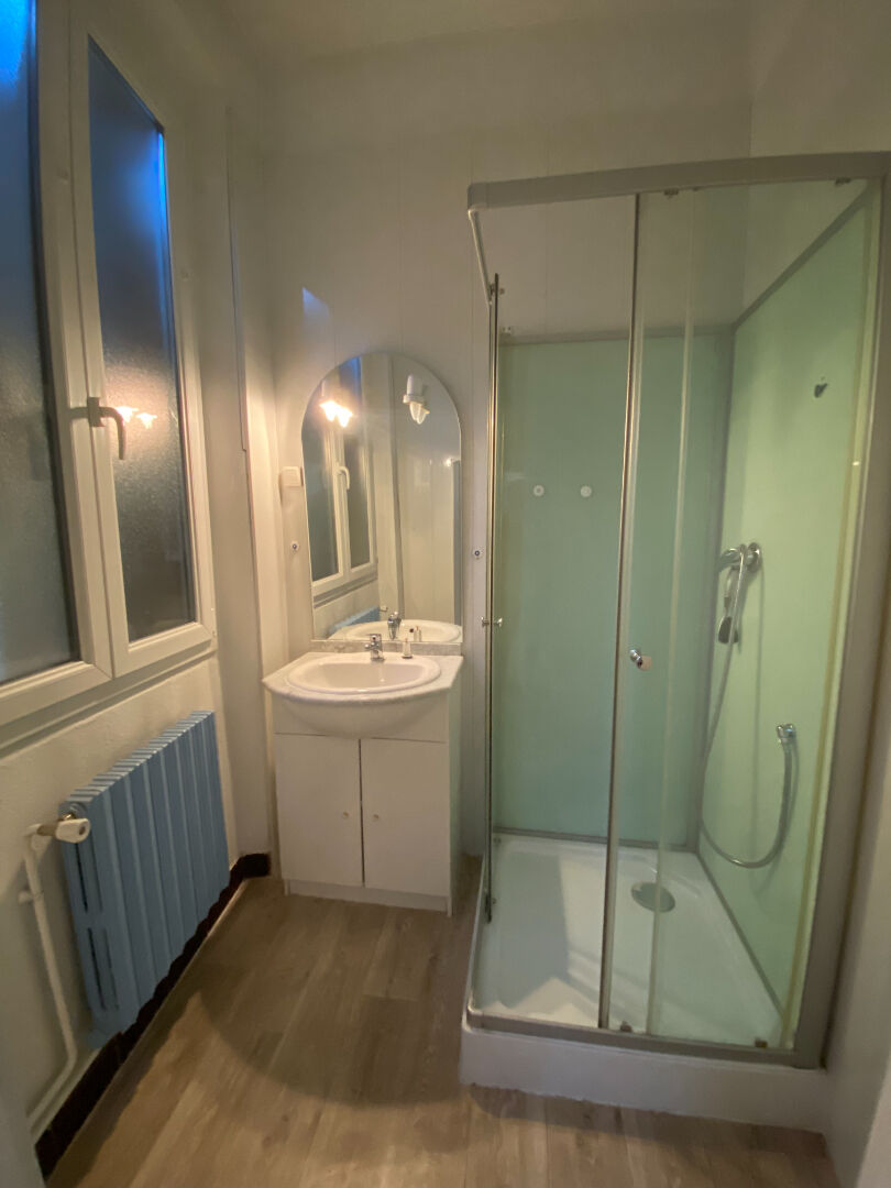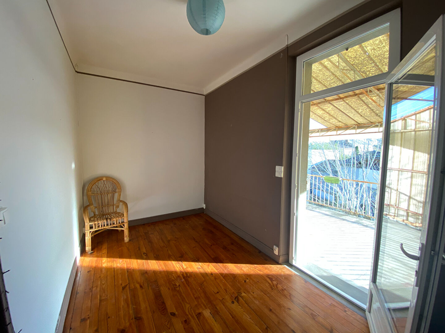 A l'étage, deux chambres dont une de 20m², une salle d'eau et une terrasse couverte d'environ 15m². Chauffage central au gaz de ville, et climatisation au rdc.