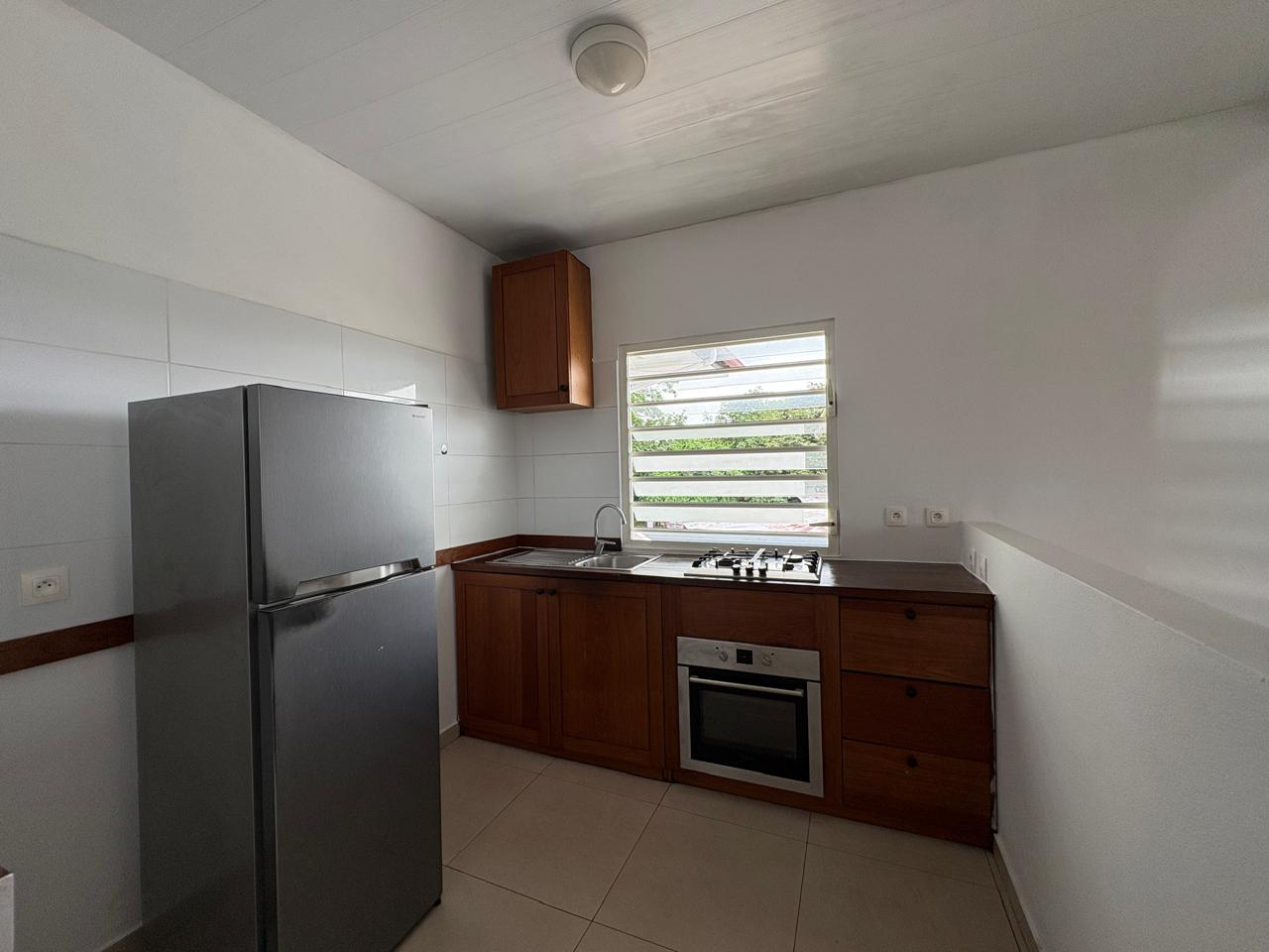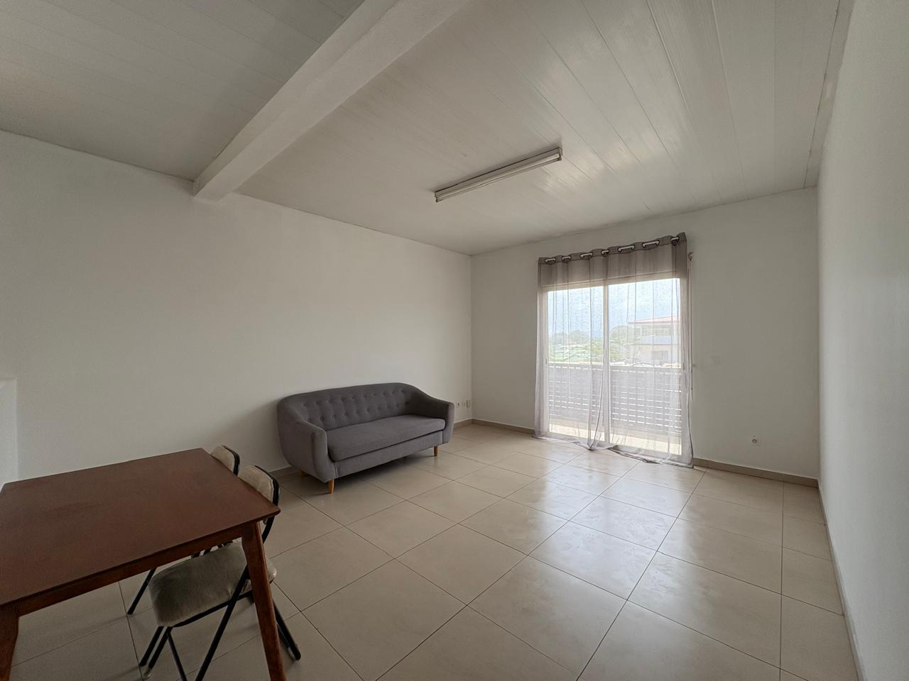 Au 1er étage d'un immeuble en R+1, un appartement meublé de deux pièces, comprenant : un séjour, une cuisine ouverte aménagée et équipée, une chambre climatisée, une salle d'eau avec WC et un balcon.