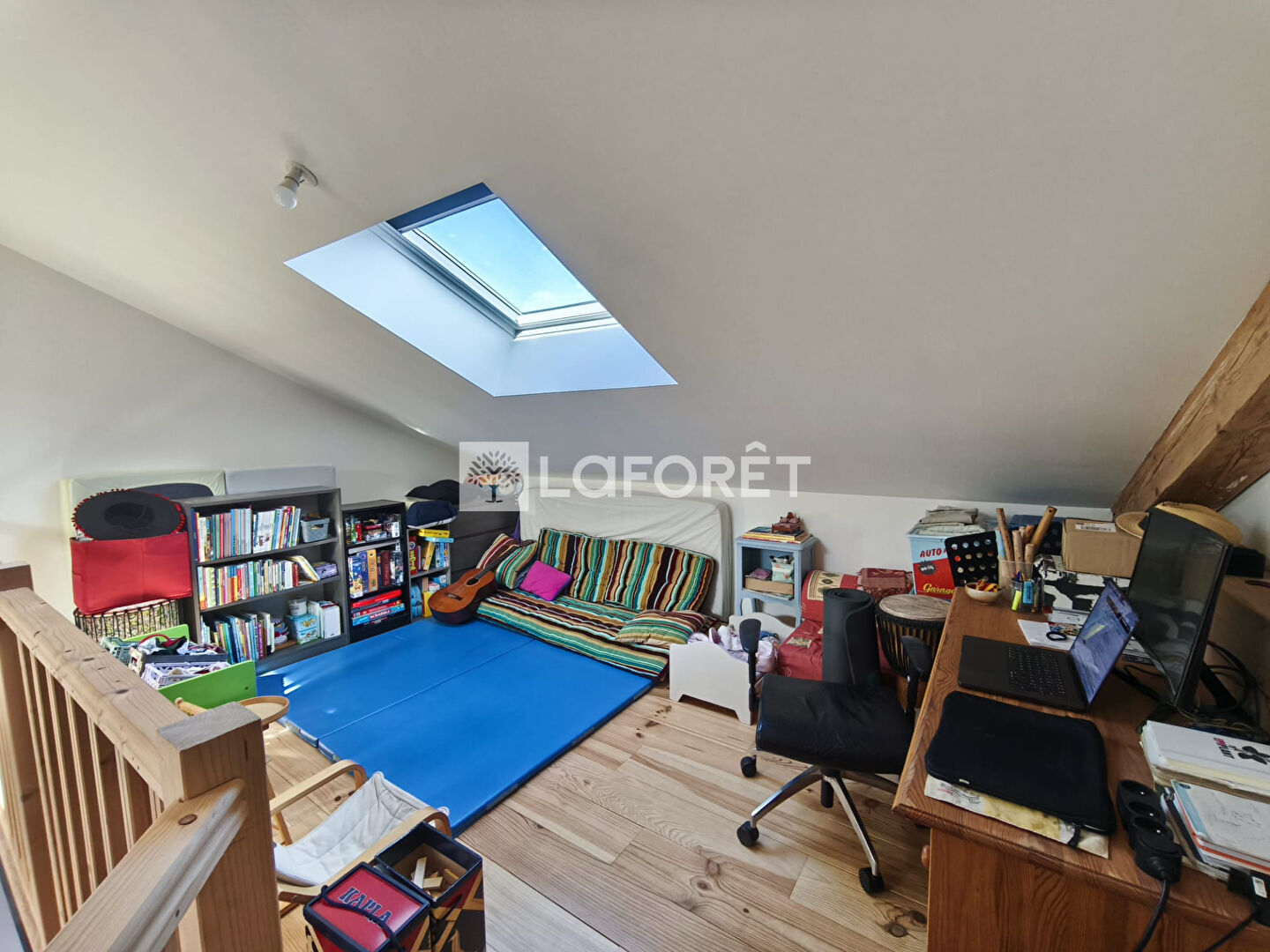 L'étage comprend également deux chambres mansardées, une salle de bain ainsi qu'un WC indépendant.