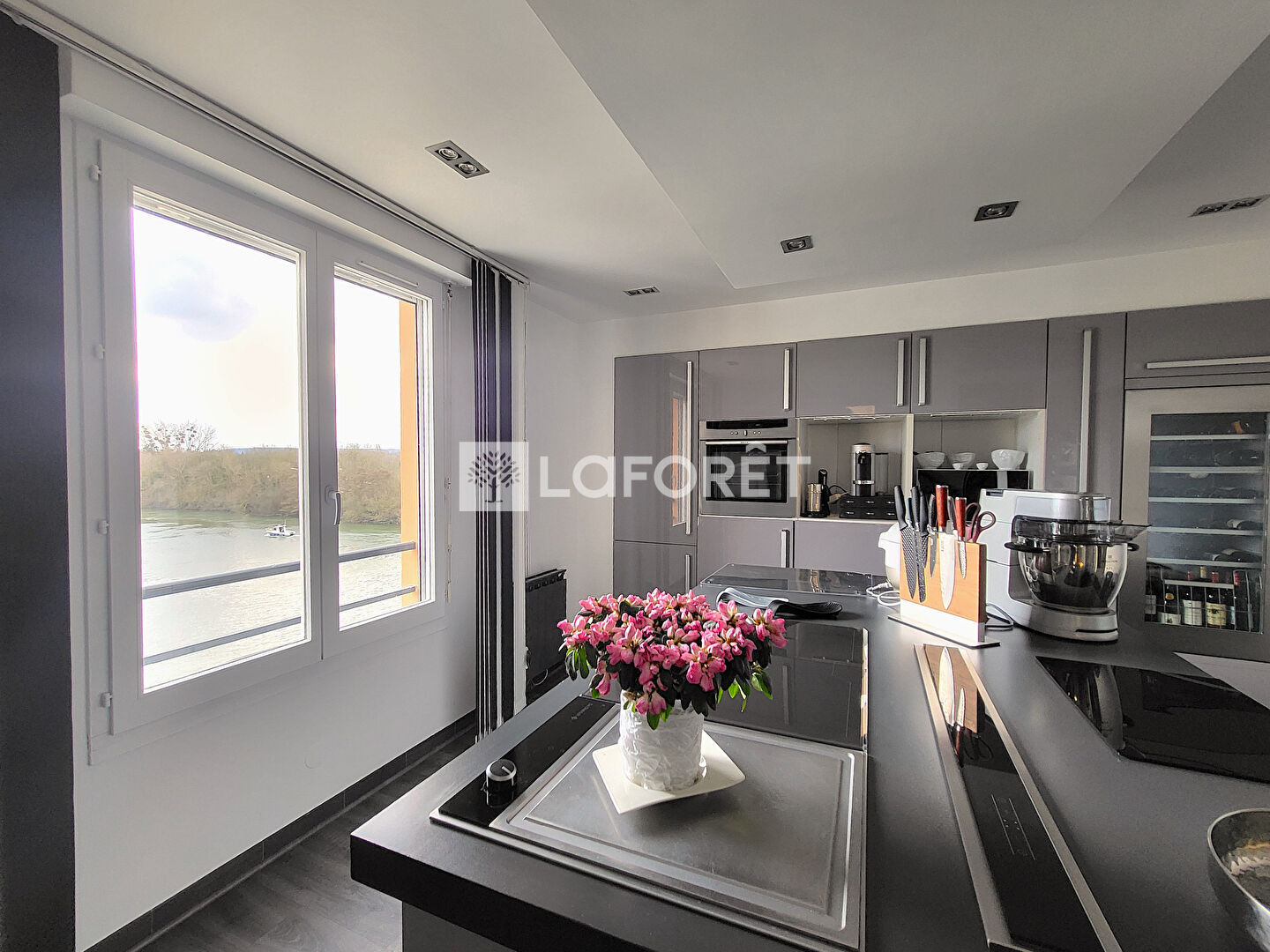 Ce triplex de 162m² loi Carrez vous séduira par ses prestations rares et soignées, composé d'un bel espace de vie de 50m² lumineux grâce à sa double exposition et offrant une vue dégagée sur l'Oise, son séjour chaleureux avec cheminée à éthanol donnant sur une loggia sans vis-à-vis, une cuisine moderne de 18m² entièrement aménagée et équipée, une buanderie avec de nombreux rangements et un wc séparé.