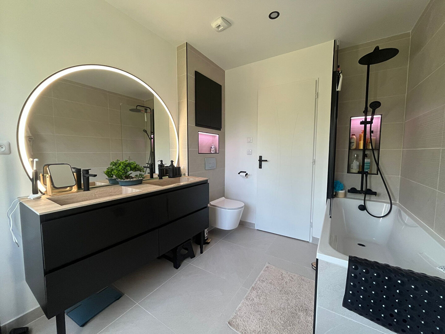 À l'étage, l'espace nuit est conçu pour le confort de toute la famille : une superbe suite parentale avec dressing et salle d'eau privative, deux autres chambres lumineuses, ainsi qu'une salle de bains avec WC.