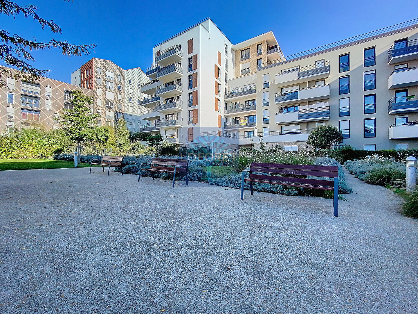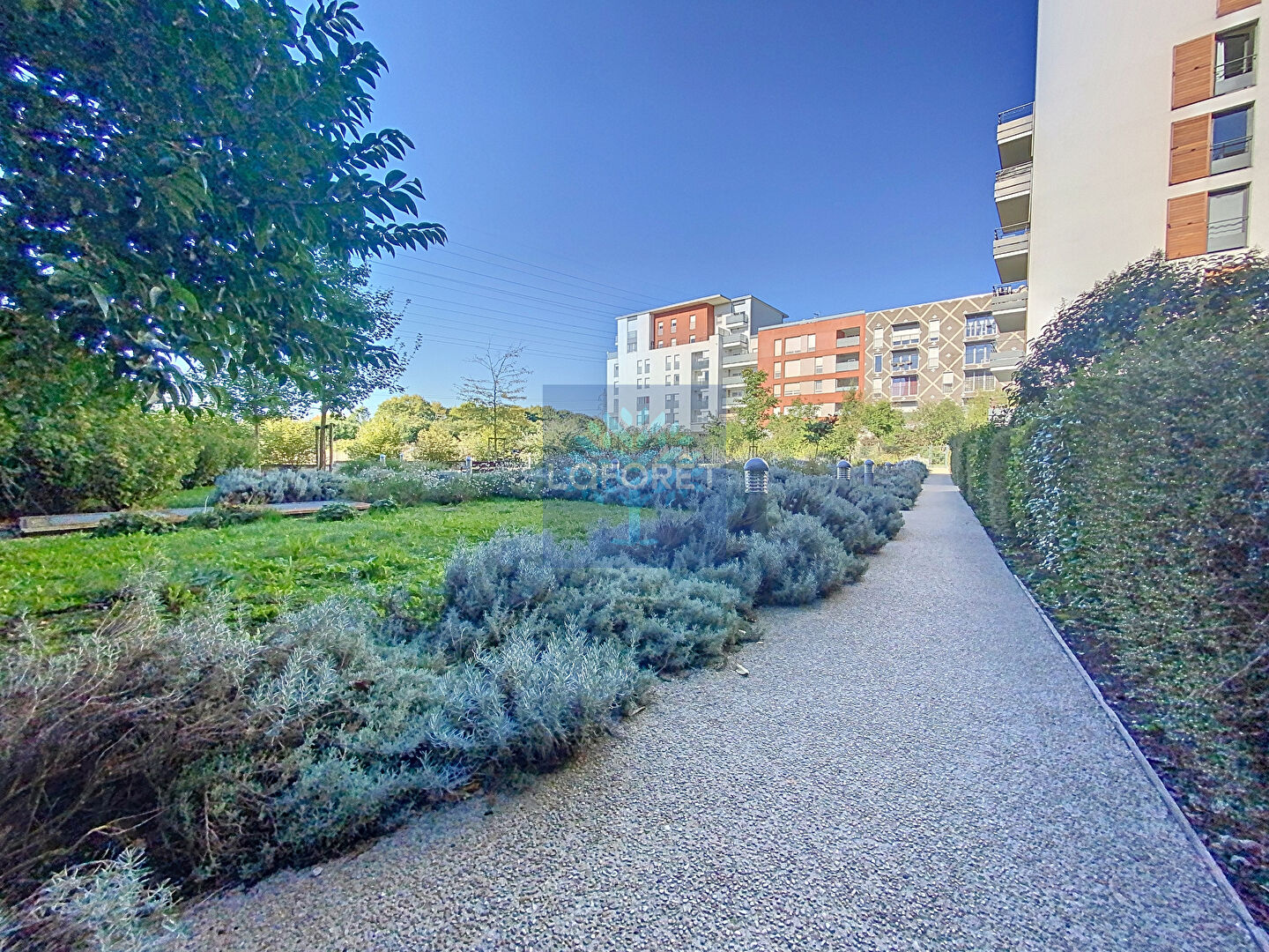 Côté extérieur : Un jardin arboré et convivial au sein de la copropriété.