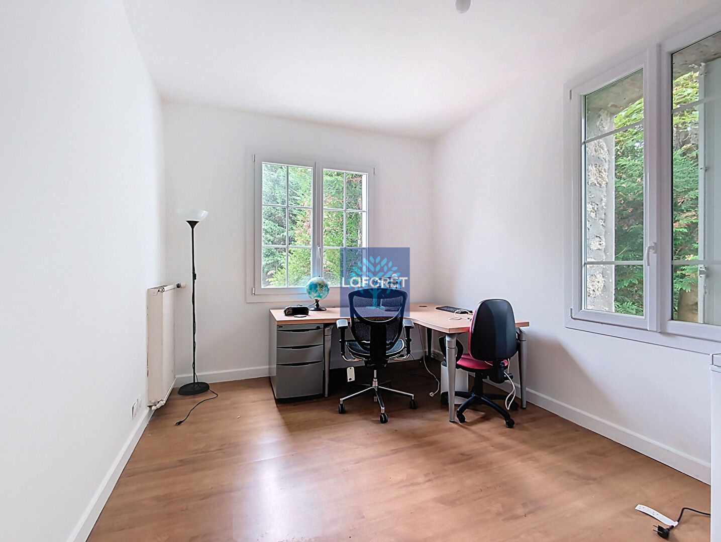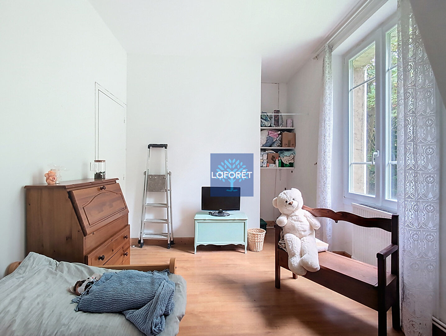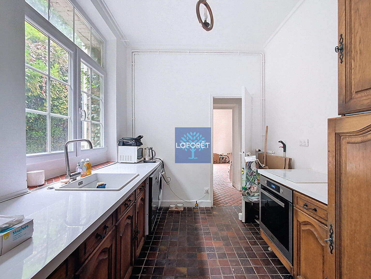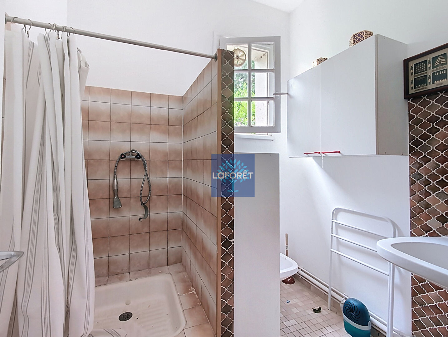 La cuisine, aménagée en longueur, bénéficie d'une grande fenêtre laissant entrer la lumière naturelle. Un WC séparé complète ce niveau. La maison comprend également une pièce détente ensoleillée, aujourd'hui dédiée à la relaxation, avec une cheminée et un accès à une grande terrasse, idéale pour profiter des belles journées.