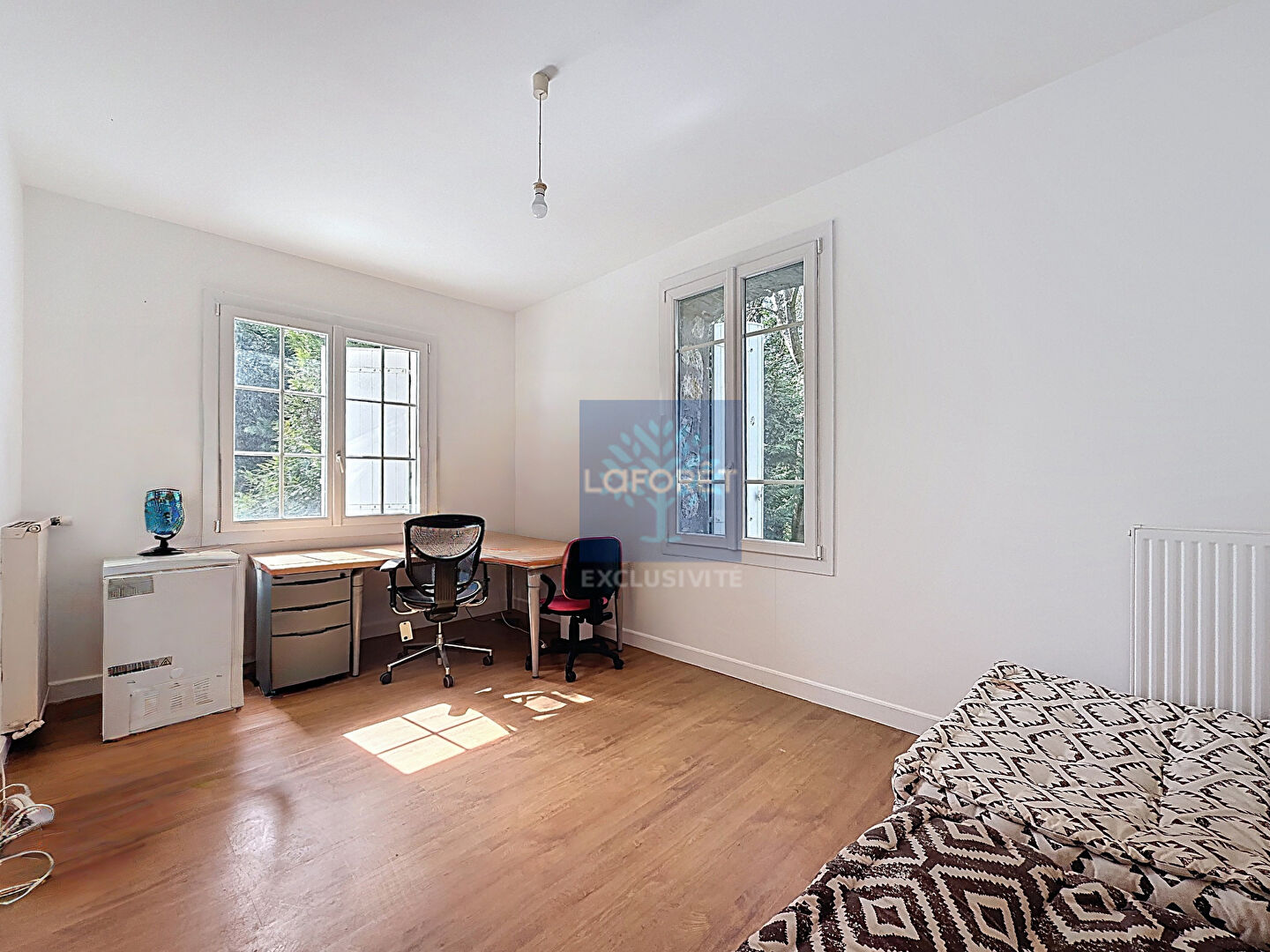 L'étage se compose de quatre chambres parquetées, avec une belle hauteur sous plafond. Une large suite parentale comprend un dressing et une salle de bains, avec une vue dégagée sur le jardin. Trois autres chambres, toutes agréables, ainsi qu'une seconde salle de bains et un WC, complètent ce niveau. Les combles sont accessibles par un escalier escamotable.