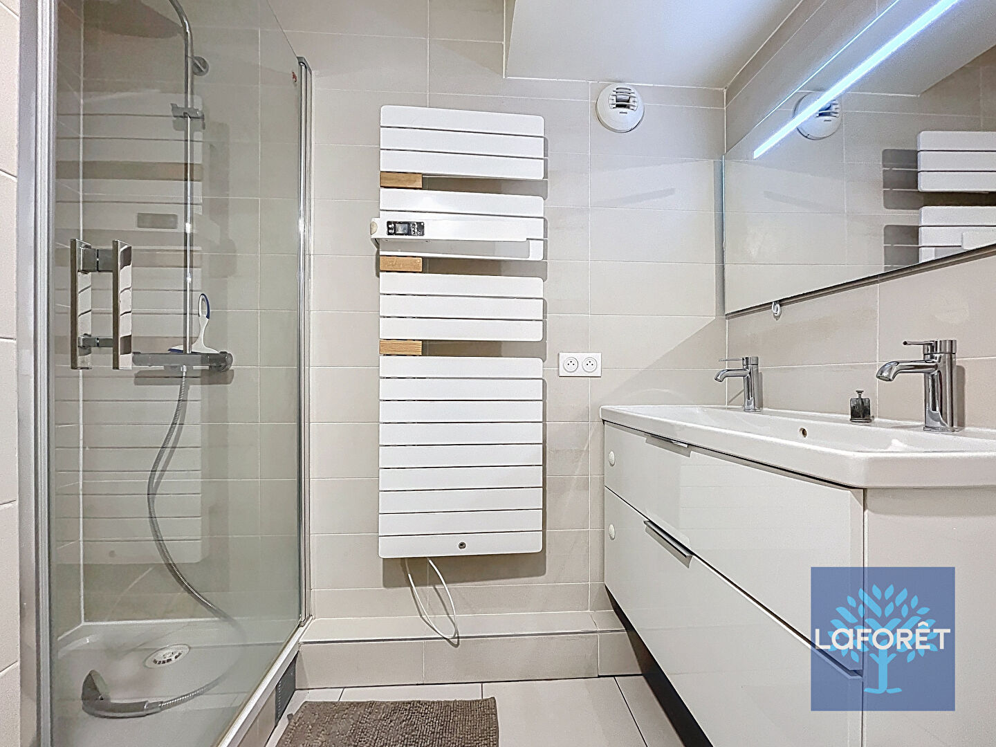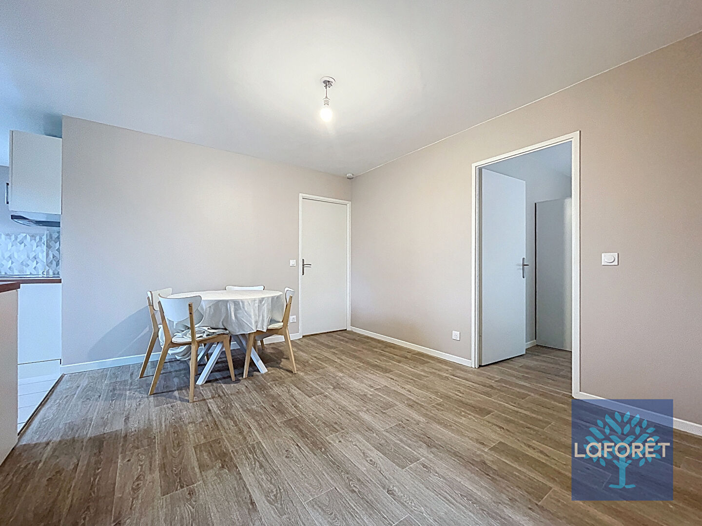 Au 1er étage, appartement deux pièces meublé comprenant : une entrée, un séjour lumineux avec cuisine ouverte aménagée et équipée, une chambre, une salle d'eau avec WC, ainsi qu'un balcon.