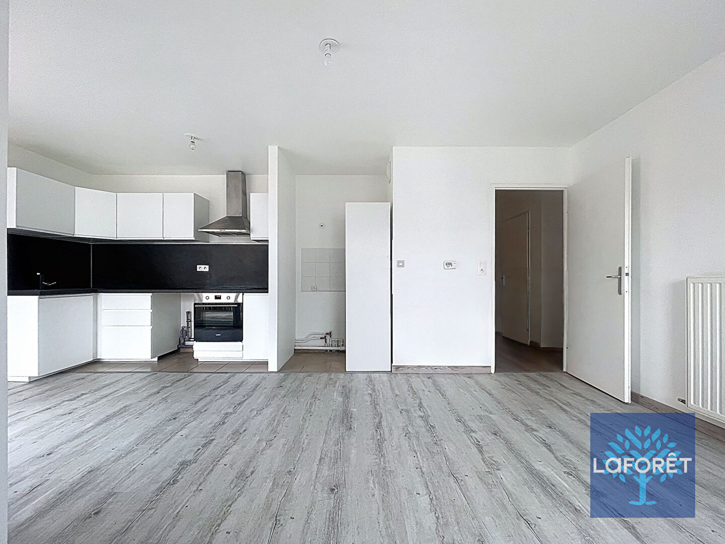Il se compose d'une entrée avec placard, d'un bel espace de vie avec cuisine ouverte aménagée et semi- équipée (four, hotte, plaque de cuisson), de trois chambres, dont une avec salle d'eau privative, une salle de bains ainsi que de deux WC séparés.
