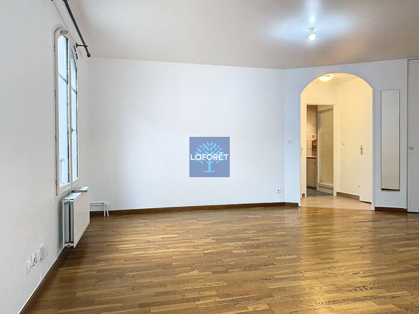 Un appartement de deux pièces composé : d'une entrée avec placard, donnant accès à une grande pièce de vie lumineuse, d'une cuisine aménagée et semi équipée, une chambre, une salle d'eau et un WC séparé.