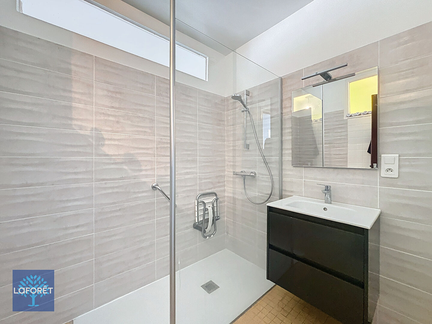 Au rez-de-chaussée : Garage, chaufferie, buanderie, 2 débarras et un studio d'environ 26 m2 composé d'une chambre, pièce de vie, salle d'eau et wc.