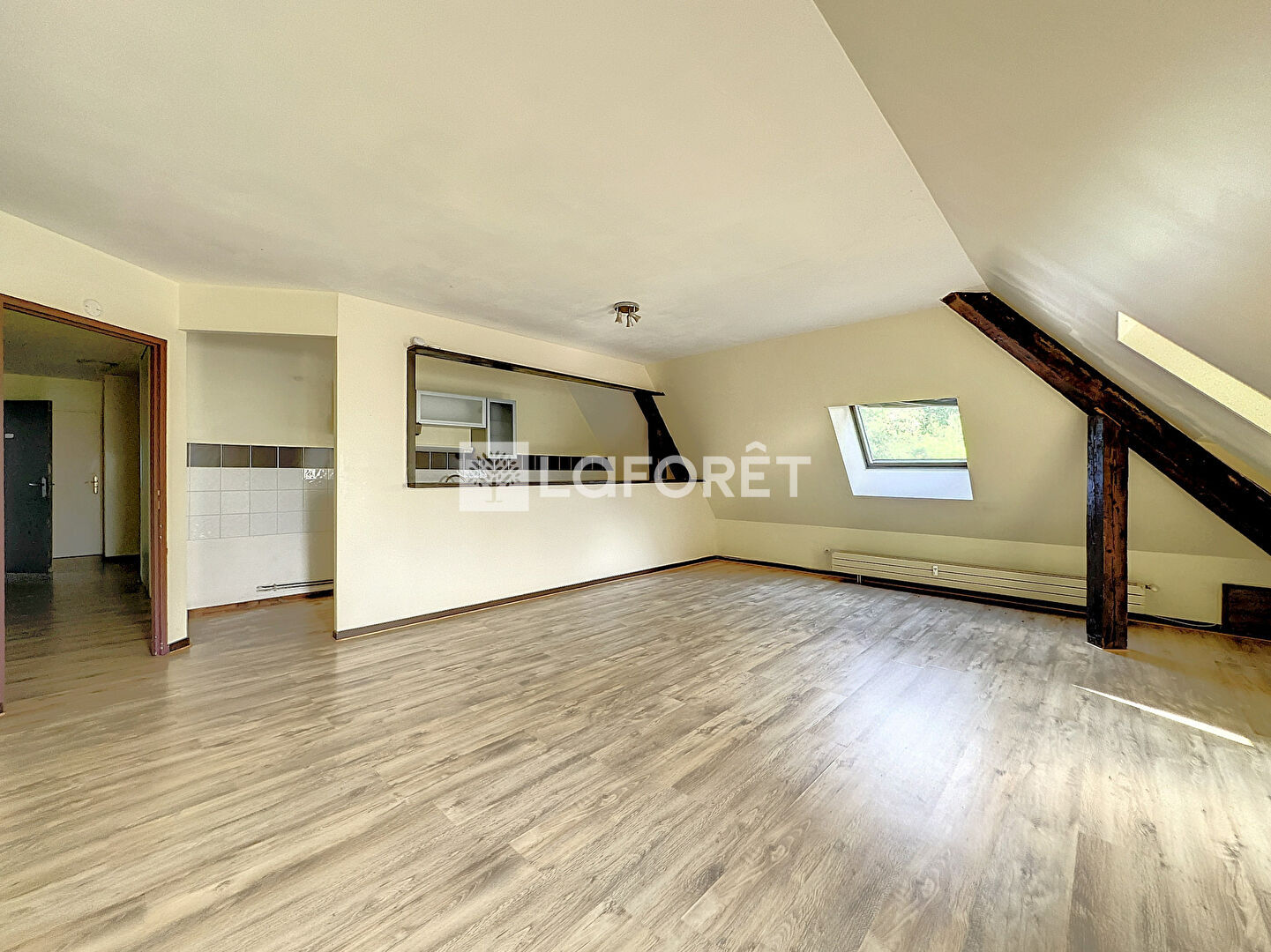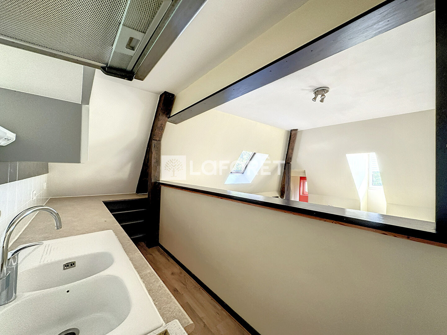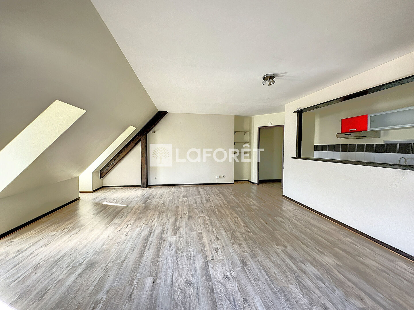 Mélange de moderne et d'ancien avec ses poutres apparentes, cet appartement saura vous séduire.