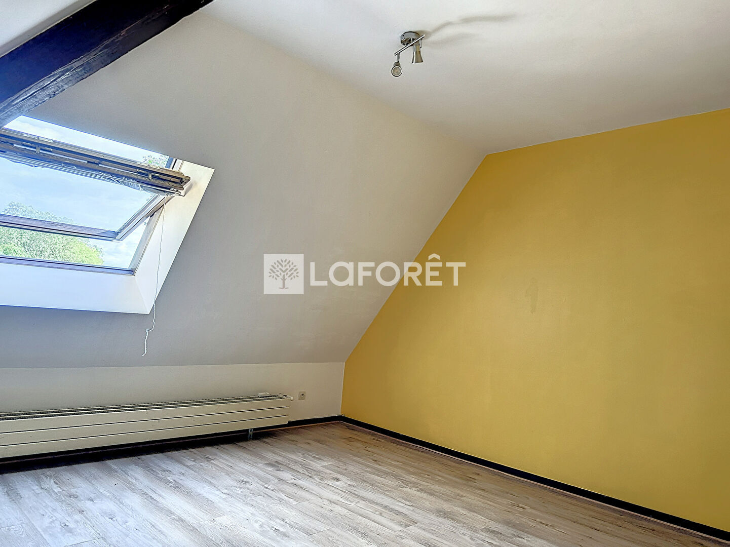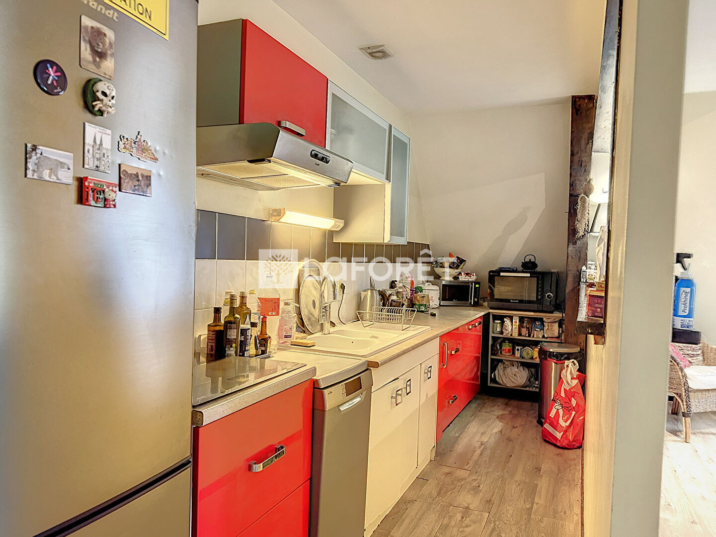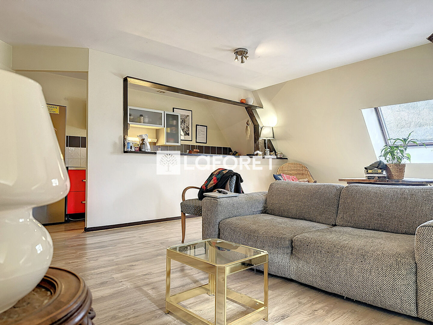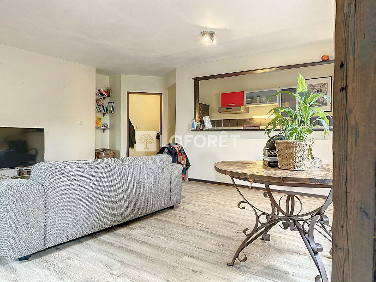 Mélange de moderne et d'ancien avec ses poutres apparentes, cet appartement saura vous séduire.