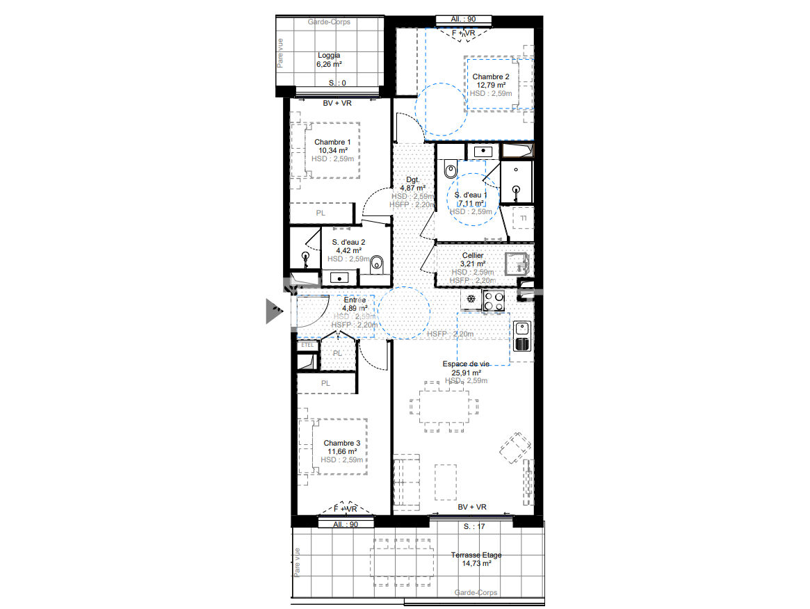 85 m² • 4 pièces • 3 chambres
