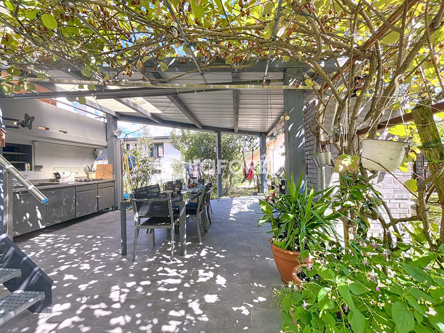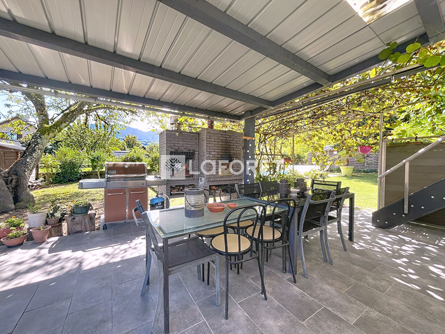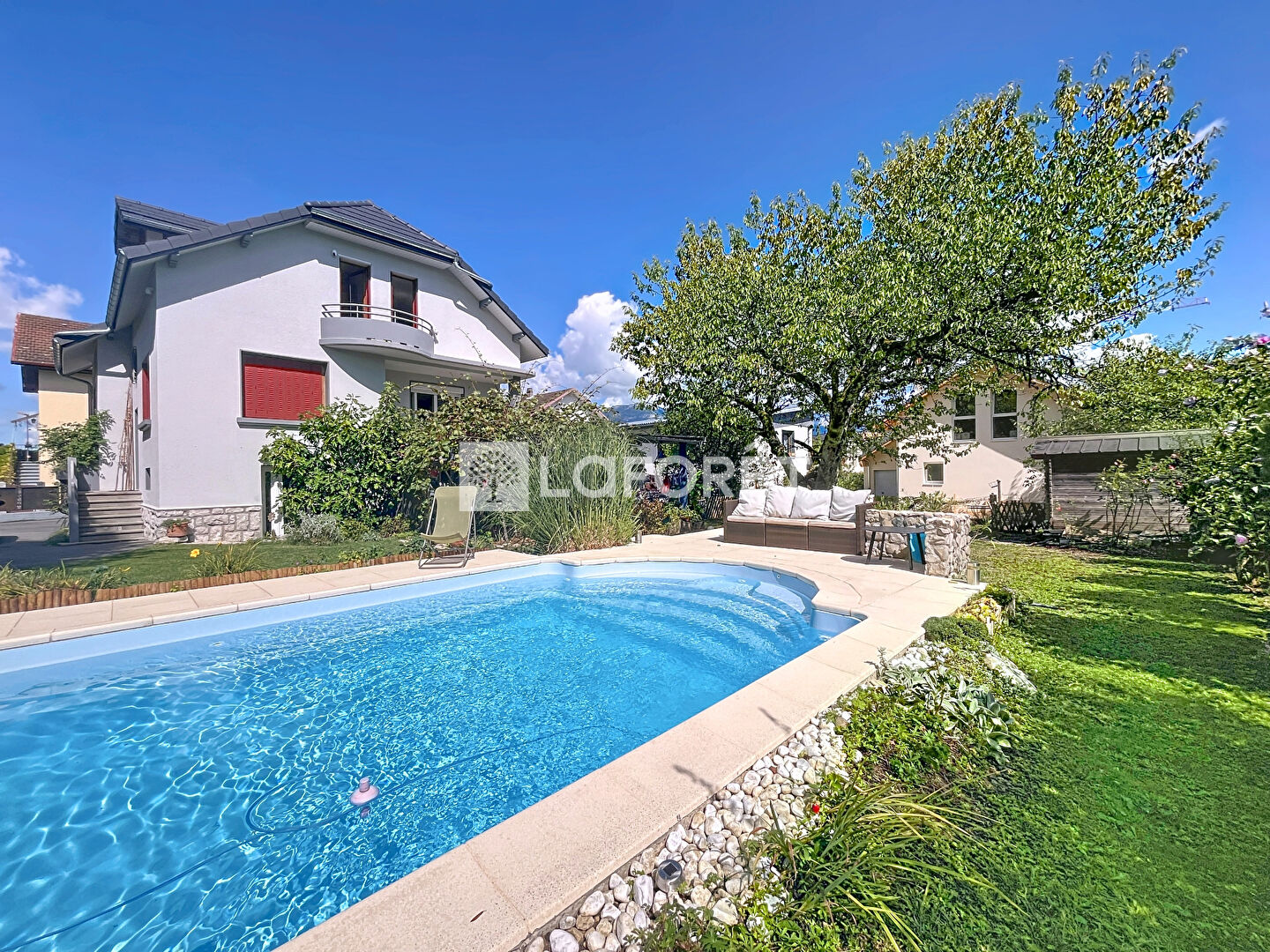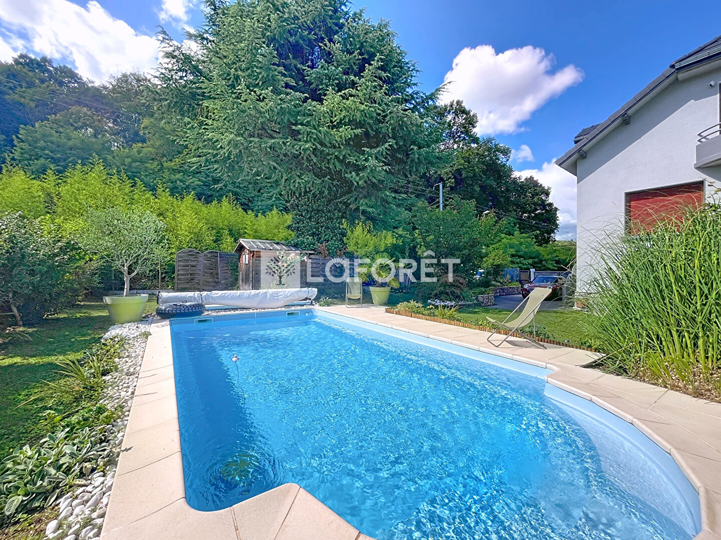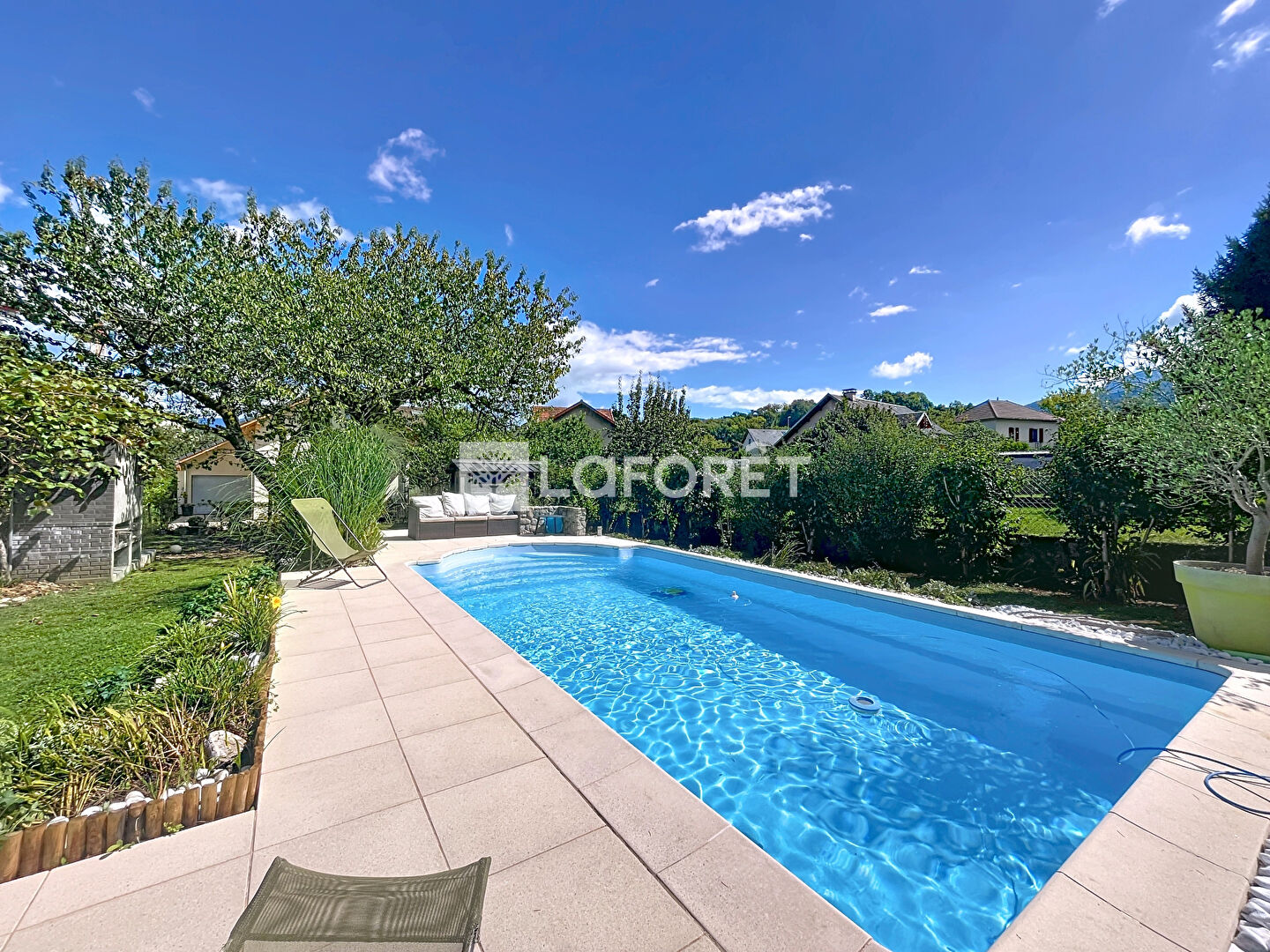À l'extérieur, le jardin clos et arboré invite à la détente avec ses nombreux arbres fruitiers et sa piscine qui promet de beaux moments en famille ou entre amis.