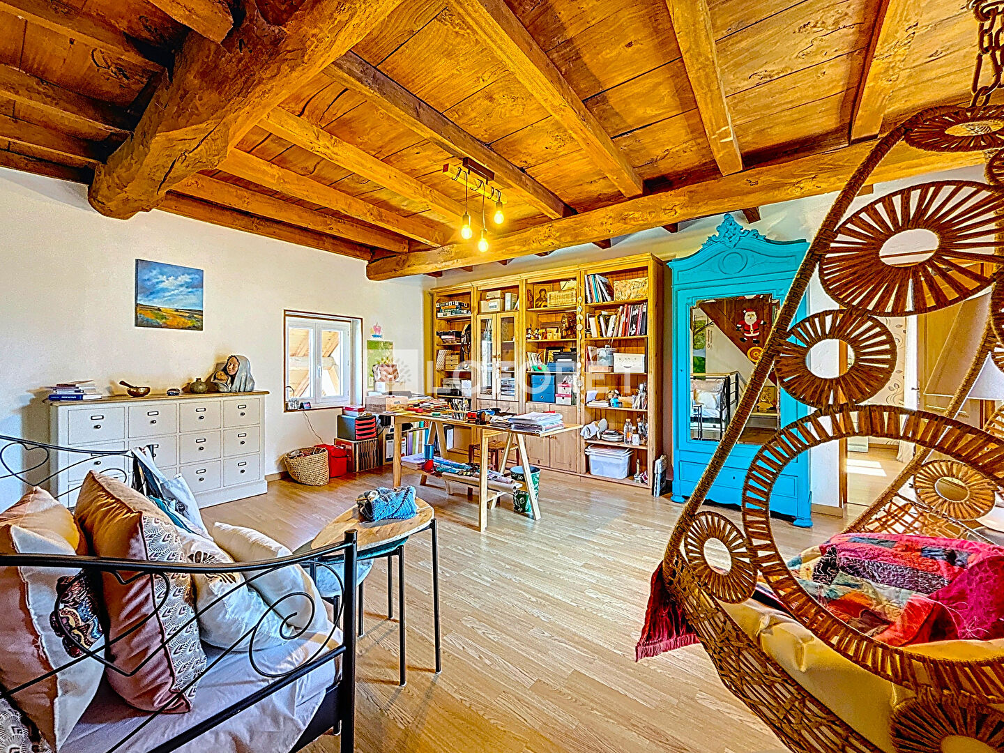 - Une grande mezzanine de plus de 30 m² aménagée en bureau et coin détente