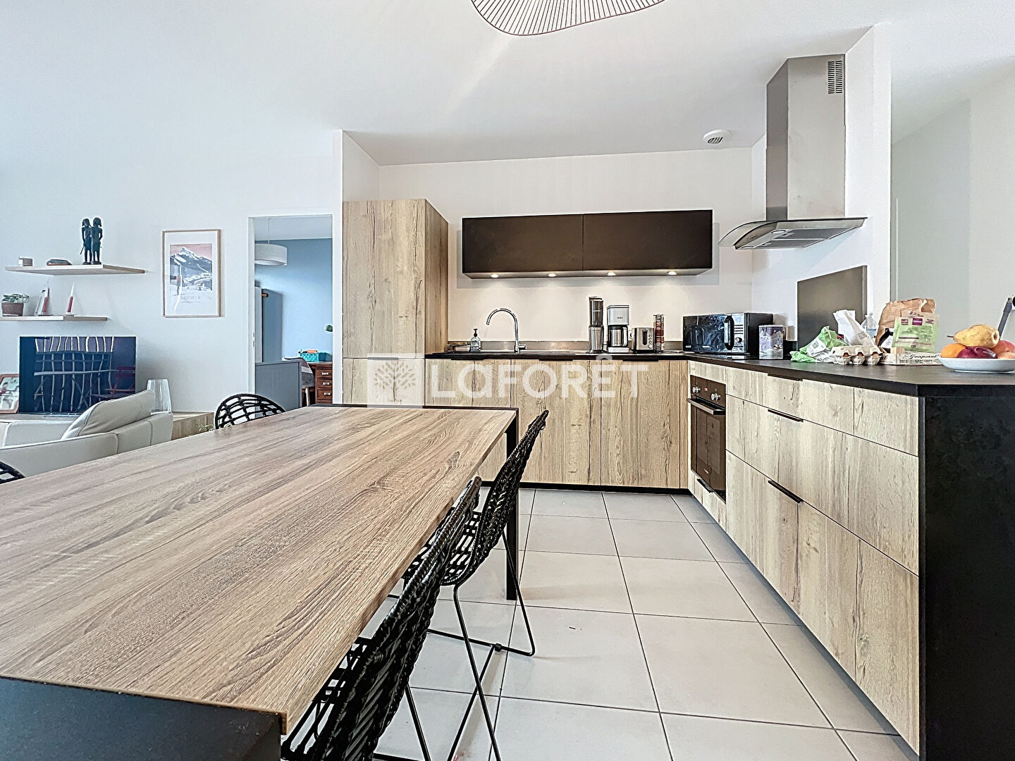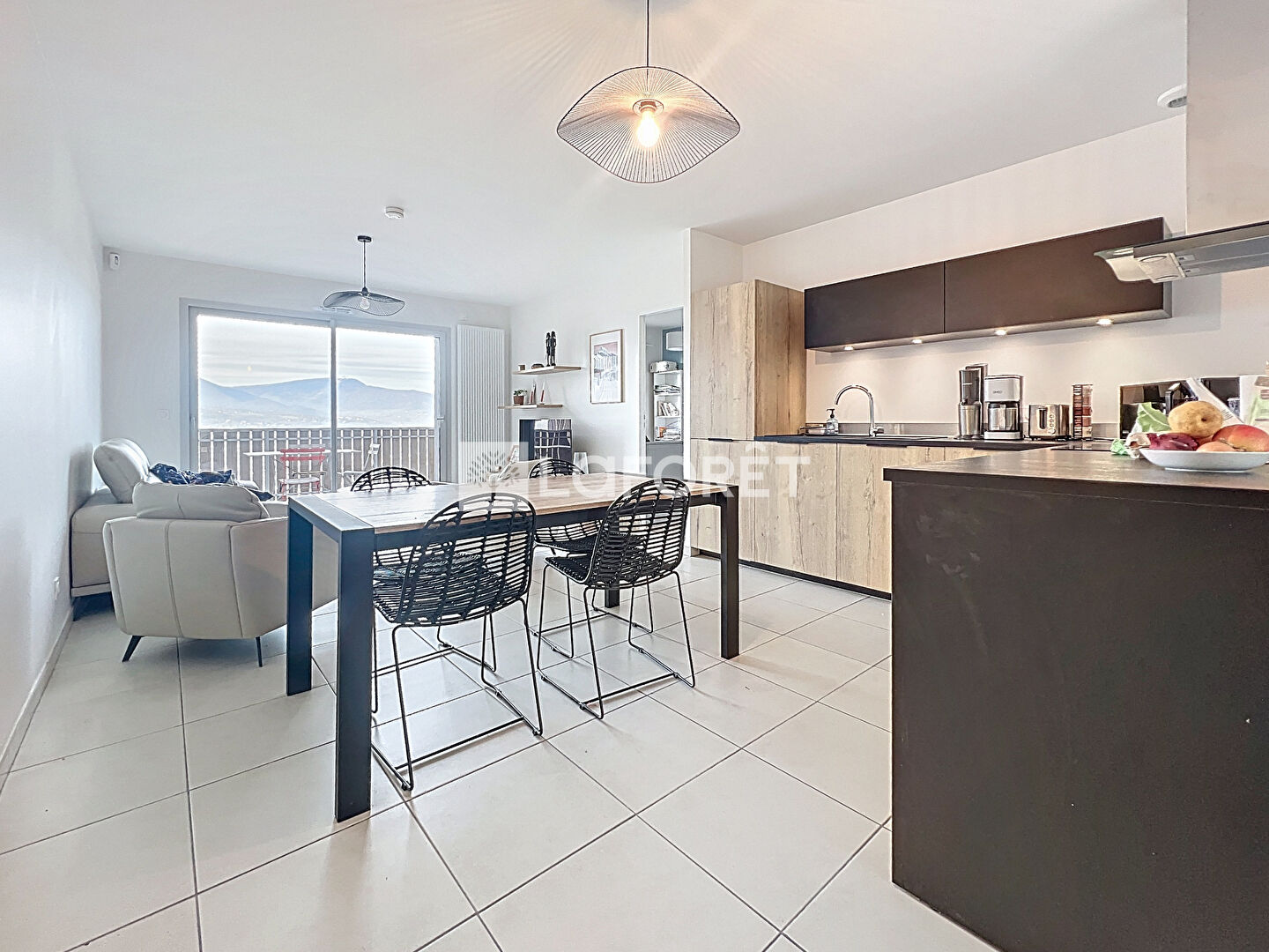Ce T4 meublé et équipé avec goût se compose d'une cuisine équipée ouvertes sur belle pièce de vie orientée ouest et prolongée par une agréable terrasse avec vue sur les montagnes.