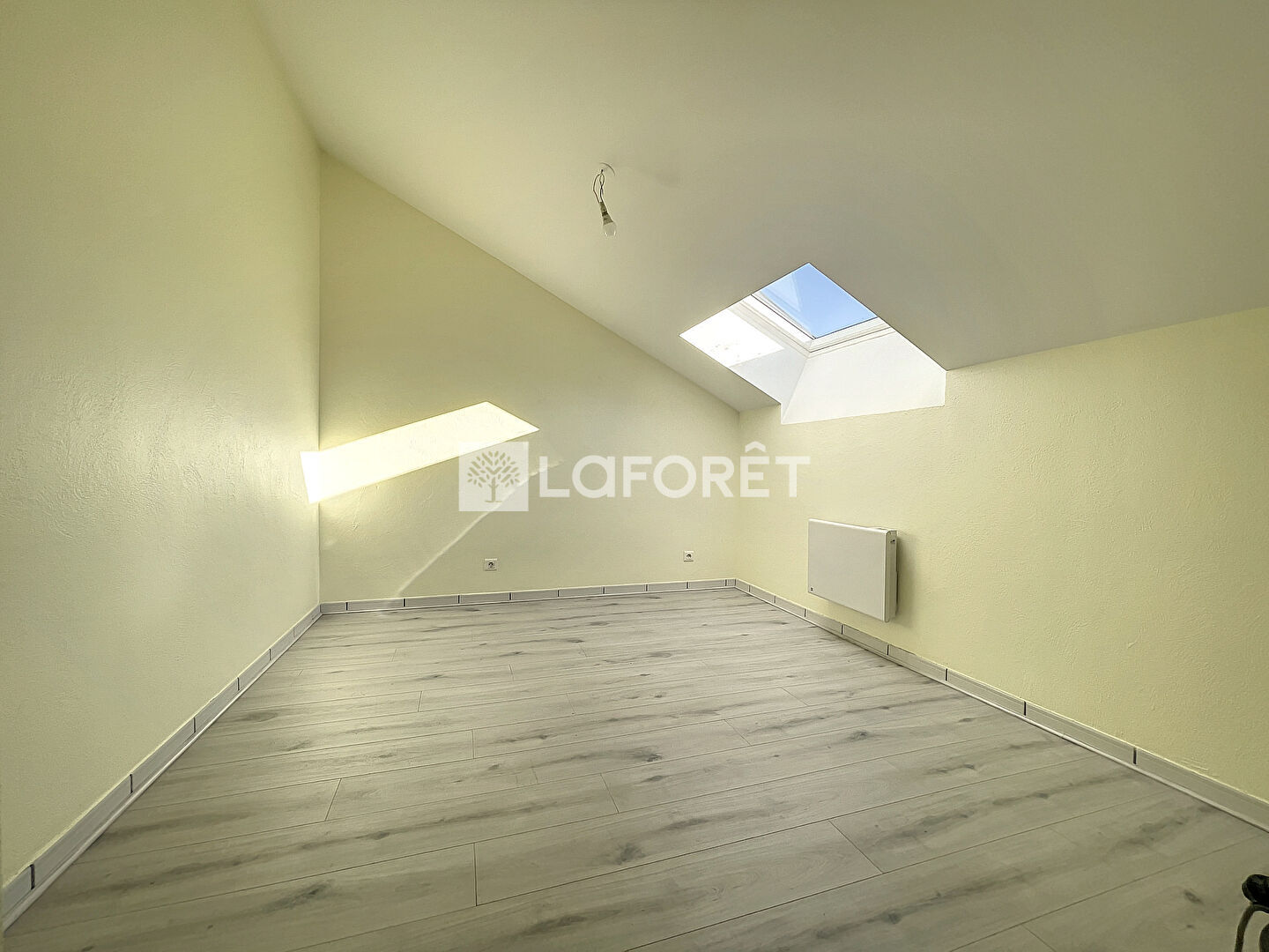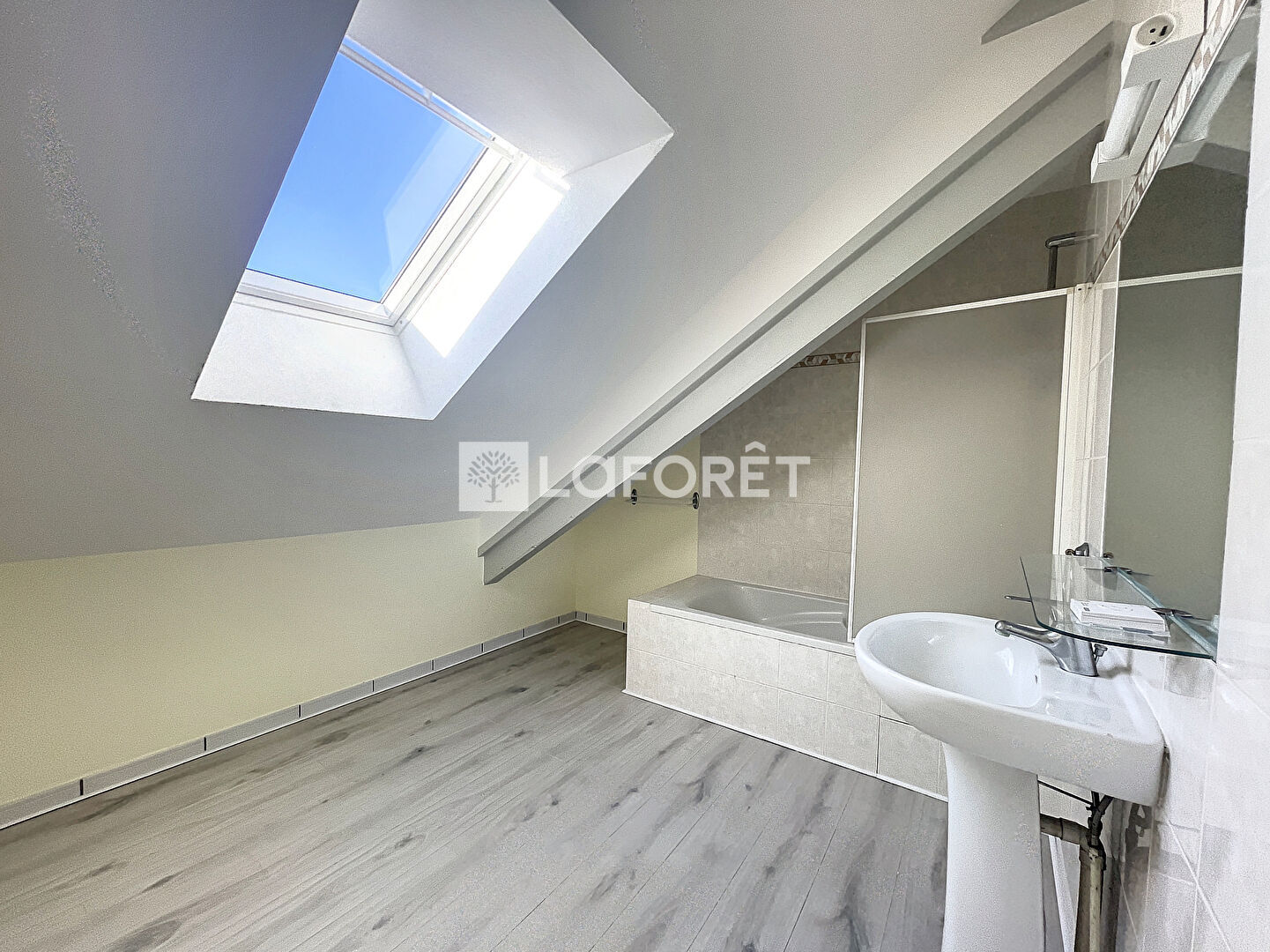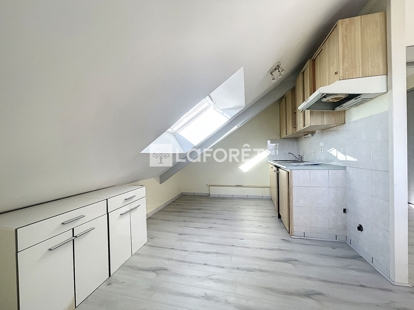 Ce T2 situé dans une petite résidence de 5 logements se compose d'une pièce de vie ouverte sur cuisine, nombreux rangements intégrés , salle de bain et toilettes séparées , chambre mansardée.