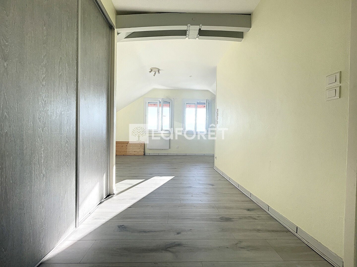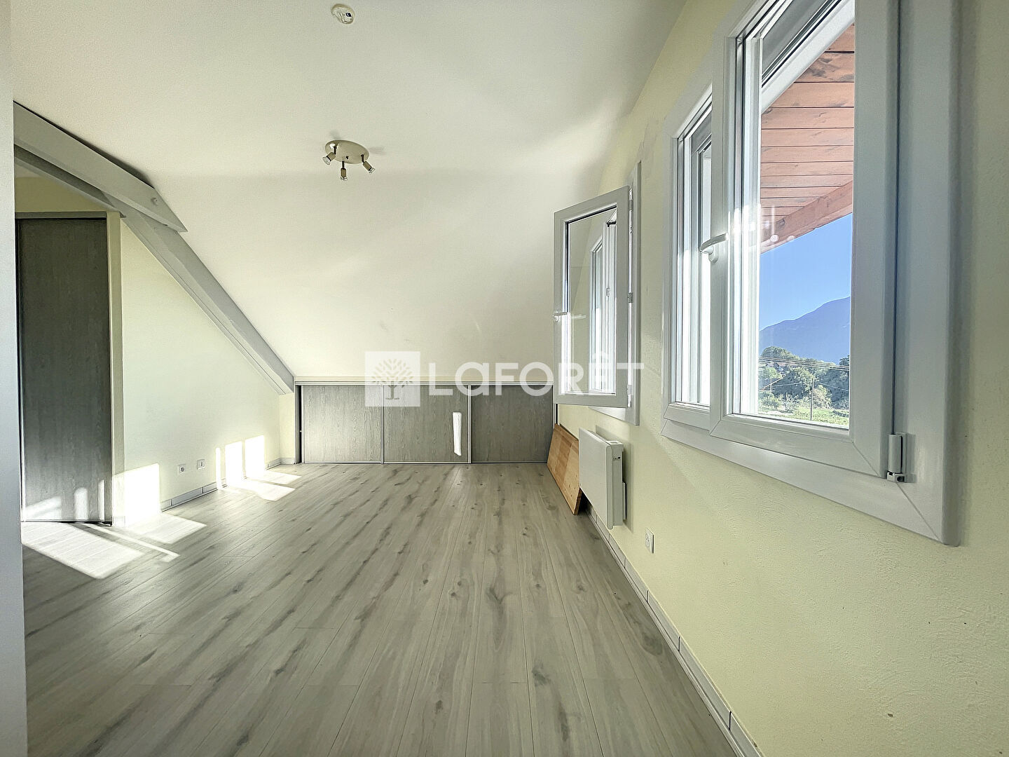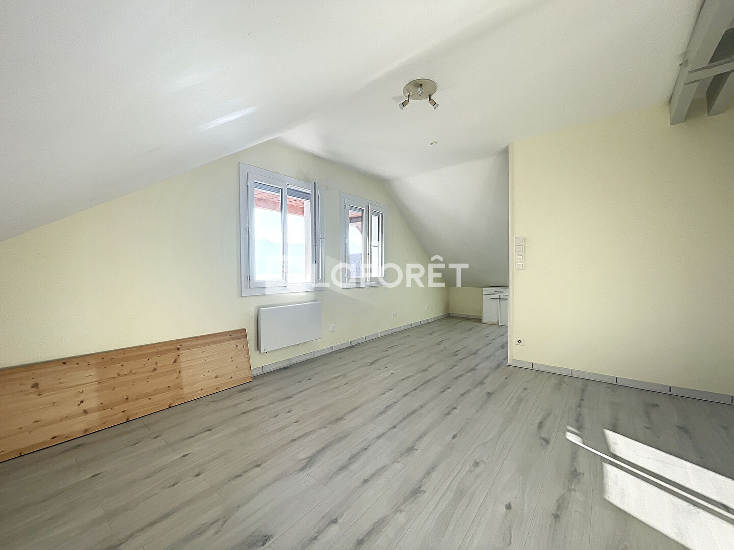 Ce T2 situé dans une petite résidence de 5 logements se compose d'une pièce de vie ouverte sur cuisine, nombreux rangements intégrés , salle de bain et toilettes séparées , chambre mansardée.